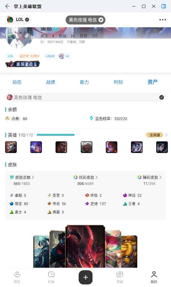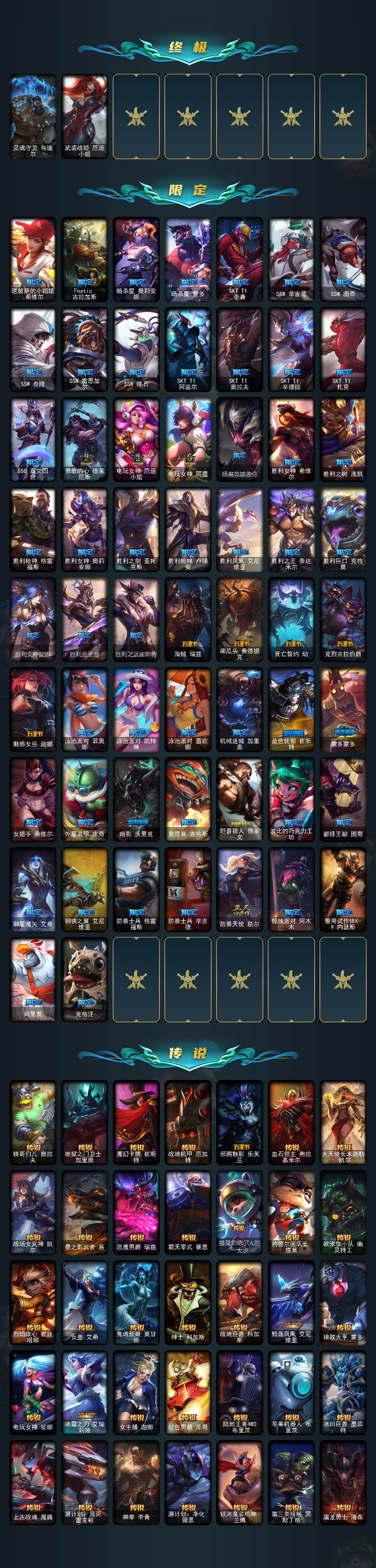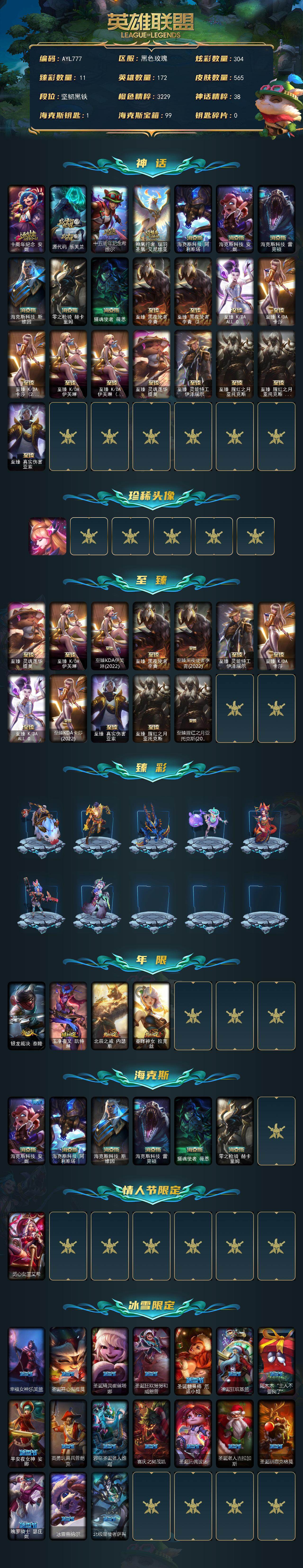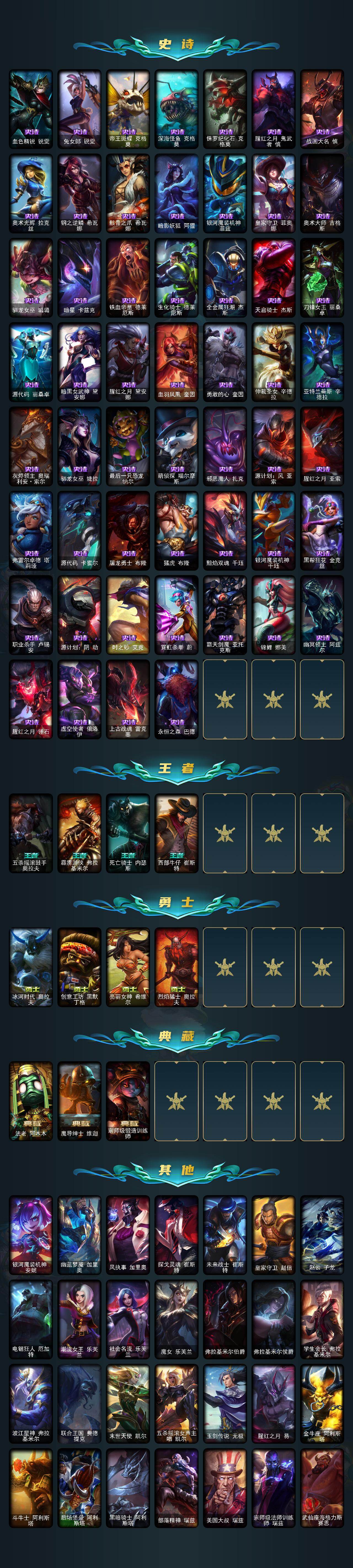 未定级段位-172英雄-565皮肤-304炫彩-2终极-22神话-80限定-56传说-137史诗