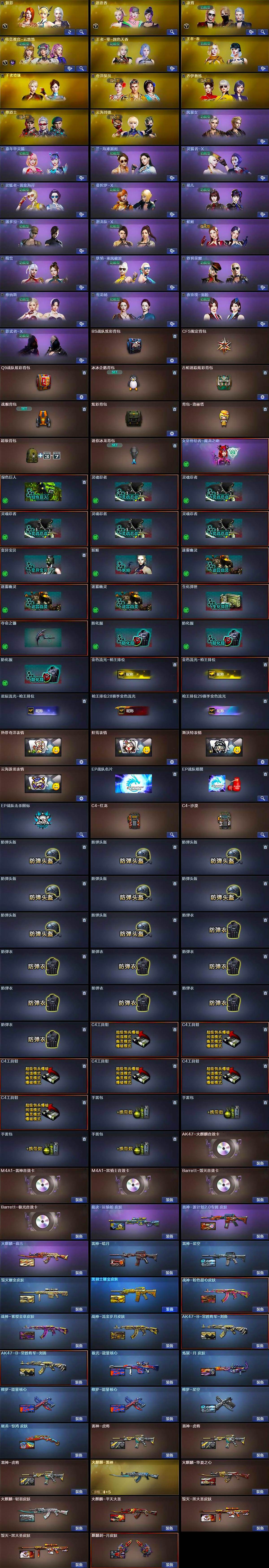 【英雄级武器】:AK47-火麒麟*2,M4A1-雷神*2,M4A1-黑骑士*6,AK47-无影,AK12-天启*3,AN94-超新星,M4A1-青龙,HK417-朱雀,M4A1-夜魔,无影-神兵利器,黑武士-锦绣游龙,八面凌龙,QBZ03-金色蔷薇,9A91