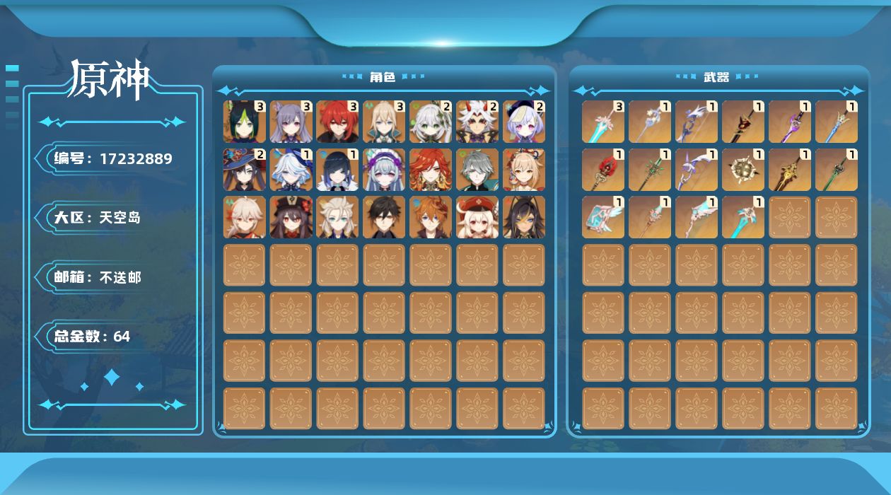 [17232889]60级/64黄/女主/22个五星角色/18个五星武器