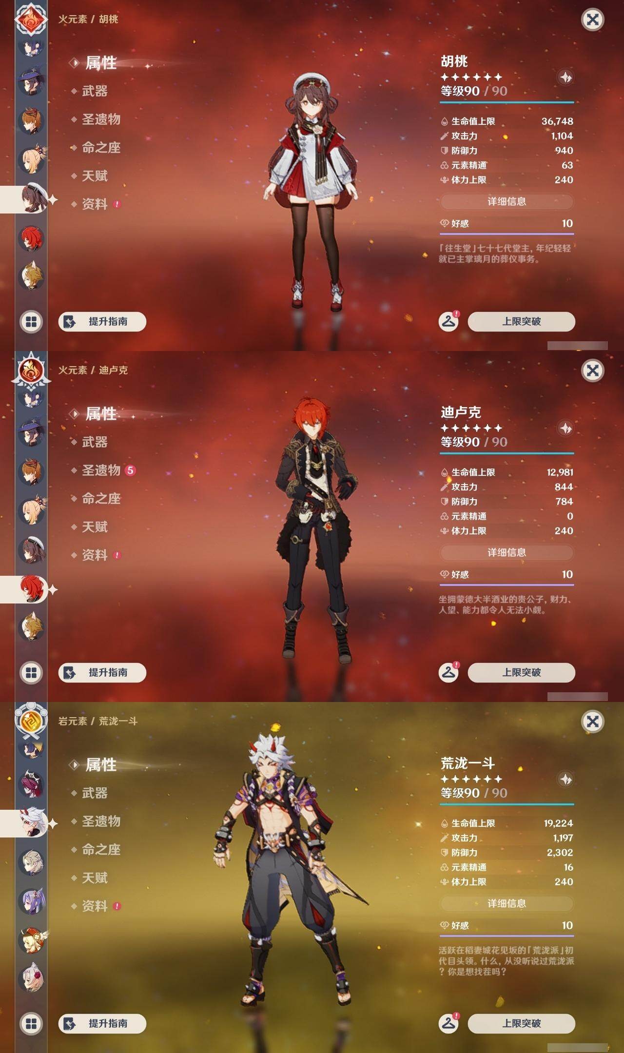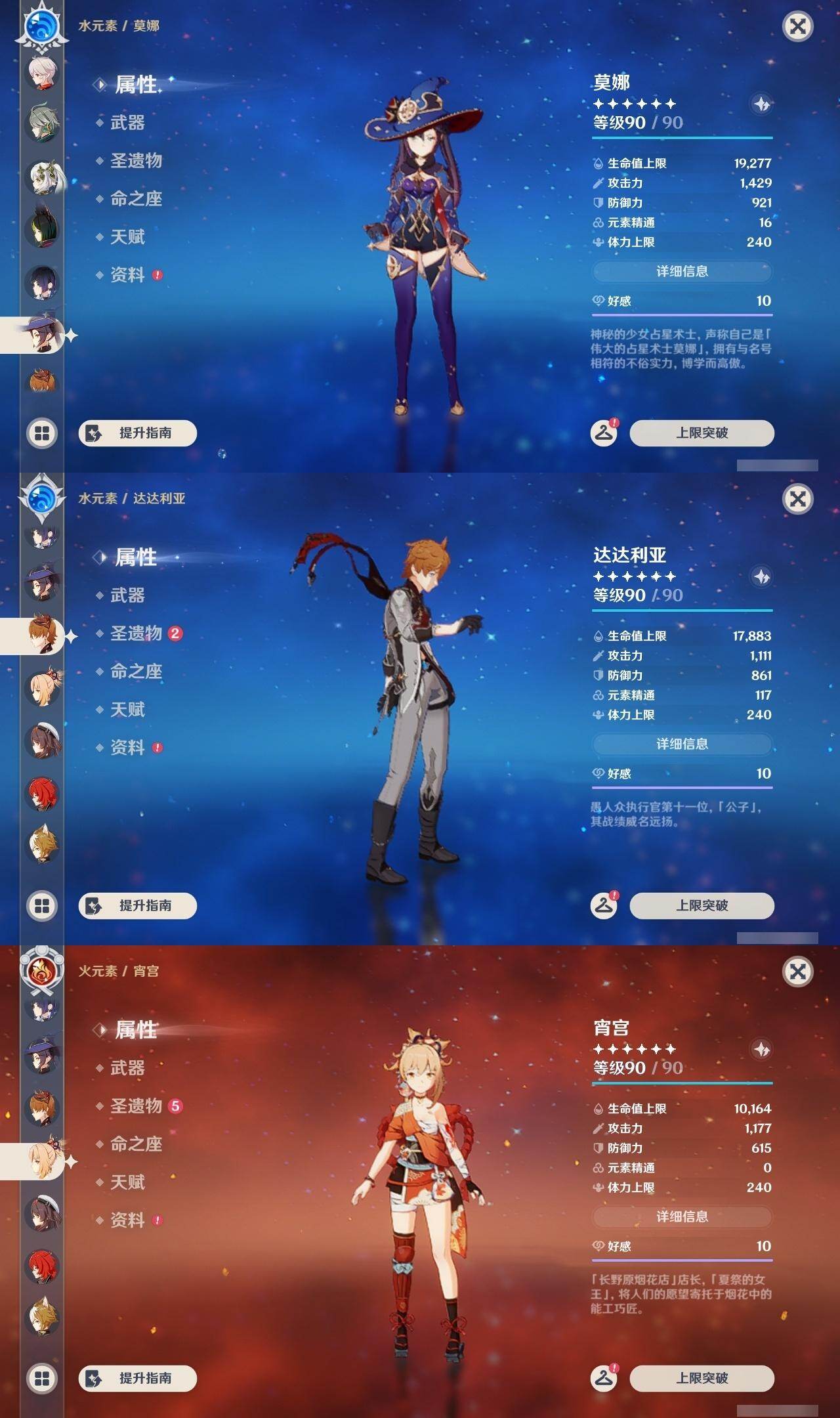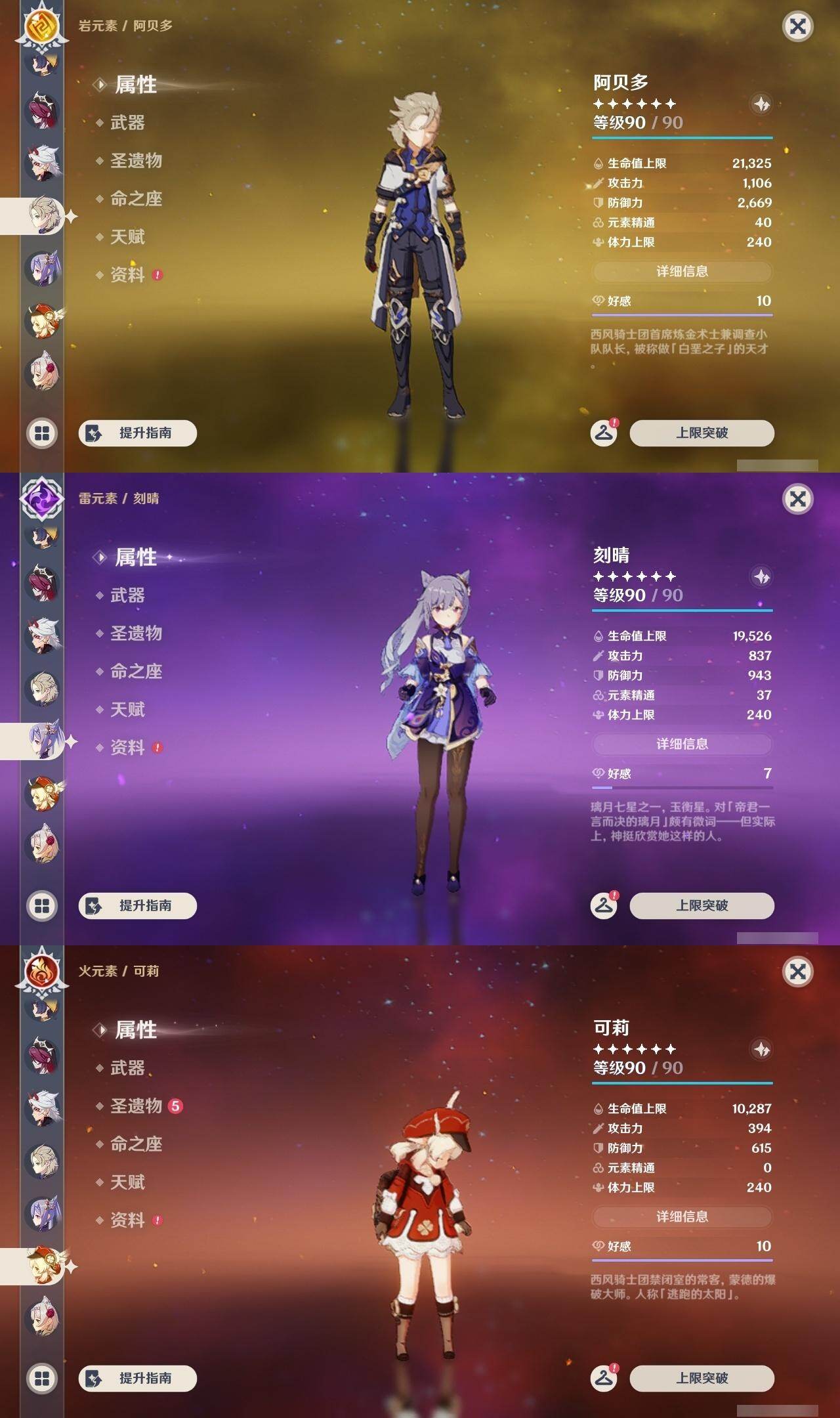钟离,枫原万叶,莫娜,达达利亚,宵宫,胡桃,迪卢克,荒泷一斗,阿贝多,刻晴,可莉,琴,七七
