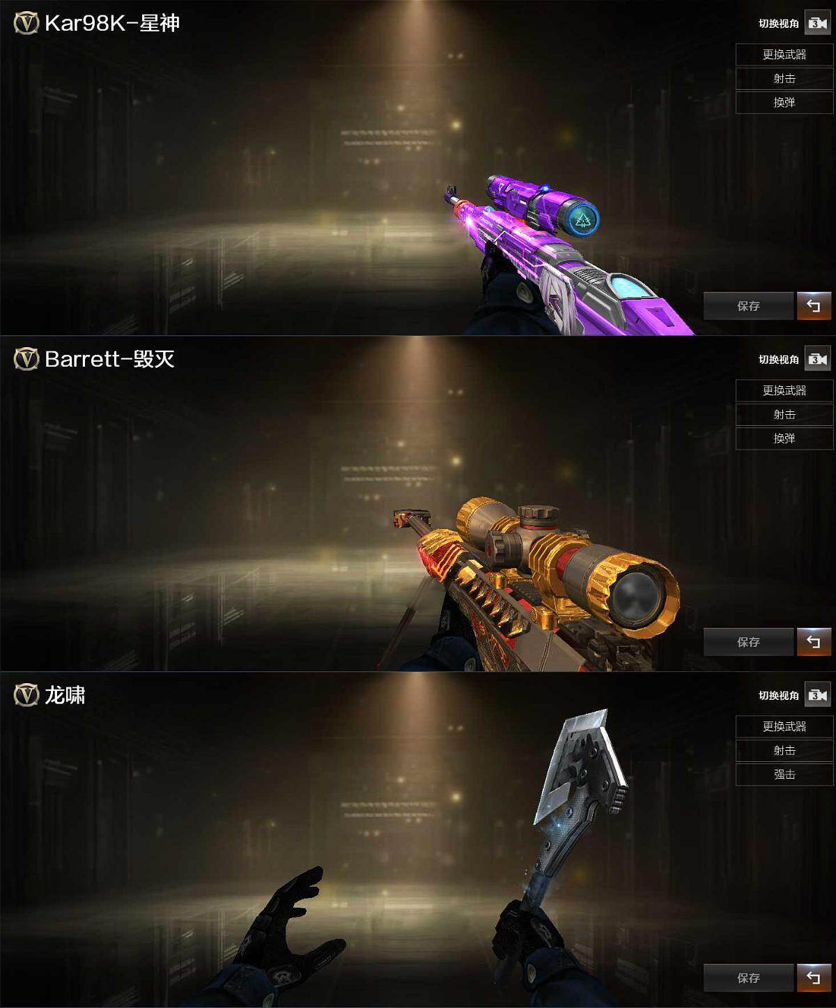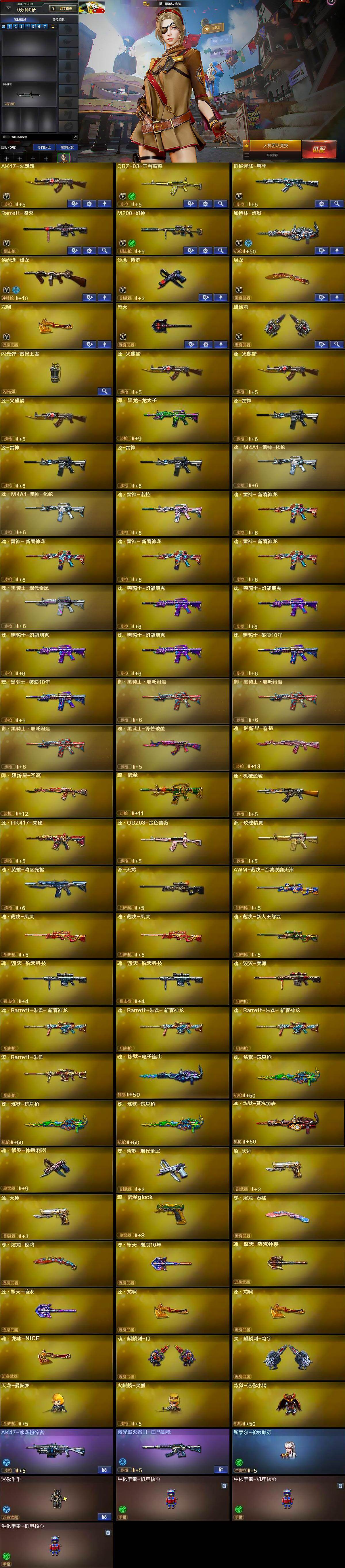【英雄级武器】:AK47-火麒麟,QBZ-03-王者蔷薇-觉醒版,机械迷城-穹宇,Barrett-毁灭,M200-幻神,加特林-炼狱,汤姆逊-烈龙,沙鹰-修罗,屠龙,龙啸,擎天,麒麟刺,闪光弹-雷暴王者