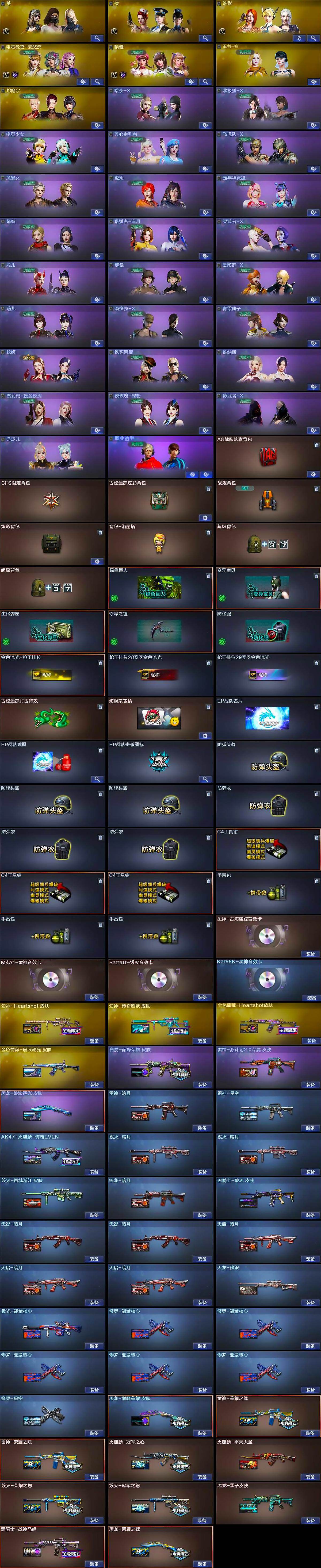 【英雄级武器】:M4A1-千变*2,AK47-火麒麟*4,M4A1-黑龙,M4A1-雷神*2,M4A1-黑骑士*2,AK47-无影,M4A1-死神,AK12-天启,M4A1-武圣,M4A1-龙血,HK417-朱雀,金色蔷薇-古蛇迷踪,M4A1-玫瑰精灵,QBZ03-金色蔷薇,M4A1-猎神,9A91-烈火,王者之魄-觉醒版,AK-4