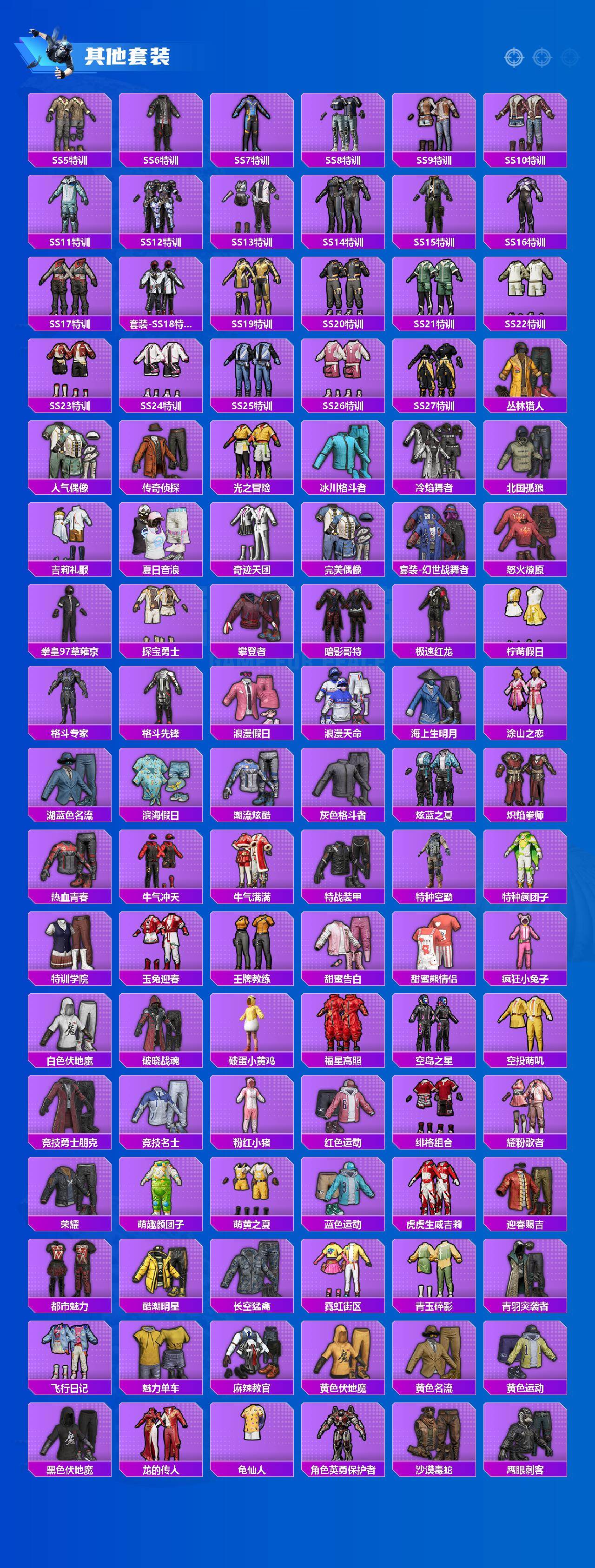 【粉色套装】:角色-绝对恒星,粉装-幻影战神,粉装-甜心巧克力,粉装-宝贝奶油派,粉装-天使彩虹糖,粉装-雪国幻梦,粉装-蝶舞迷情,粉装-梦幻火箭,粉装-缤纷油彩,粉装-放客神游,粉装-冰霜白皇,粉装-星之彼岸,粉装-馨动时刻,粉装-飓风飞鹰,粉装-齐天大圣,角色-洛天依,角色-初号机款机体服,粉装-恐龙拽拽,角色-复仇流浪者,粉装-音爆索尼克,粉装-拂晓神骑,角色-冰炎战车,角色-紫钛骑兵,角色-烟云彩露,角色-樱桃泡泡,角色-幻海仙踪,粉装-星穹咏叹调,粉装-幻彩电音,角色-狂魅哈莉,角色-冷漠罗丽,角色-绯穹魔姬,角色-奇迹舞步 美雪,角色-羊梦糖心,角色-震天雷神