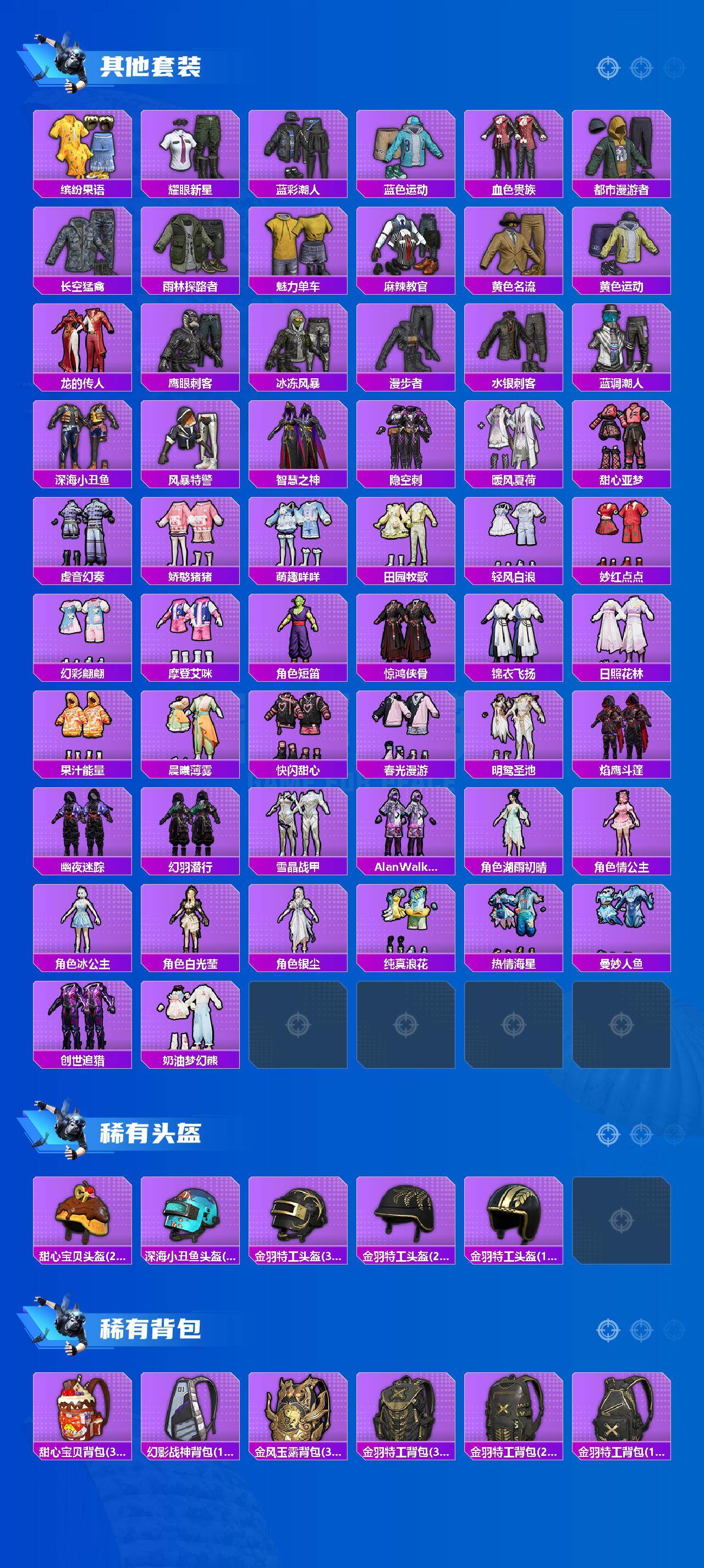 【稀有套装】:套装-巳巳如意,套装-燕燕于飞,套装-鱼渊荷华,套装-星影赞美诗,套装-霓虹热舞,套装-朱霞炽焰,套装-凌霄紫焰,套装-擎苍青焰