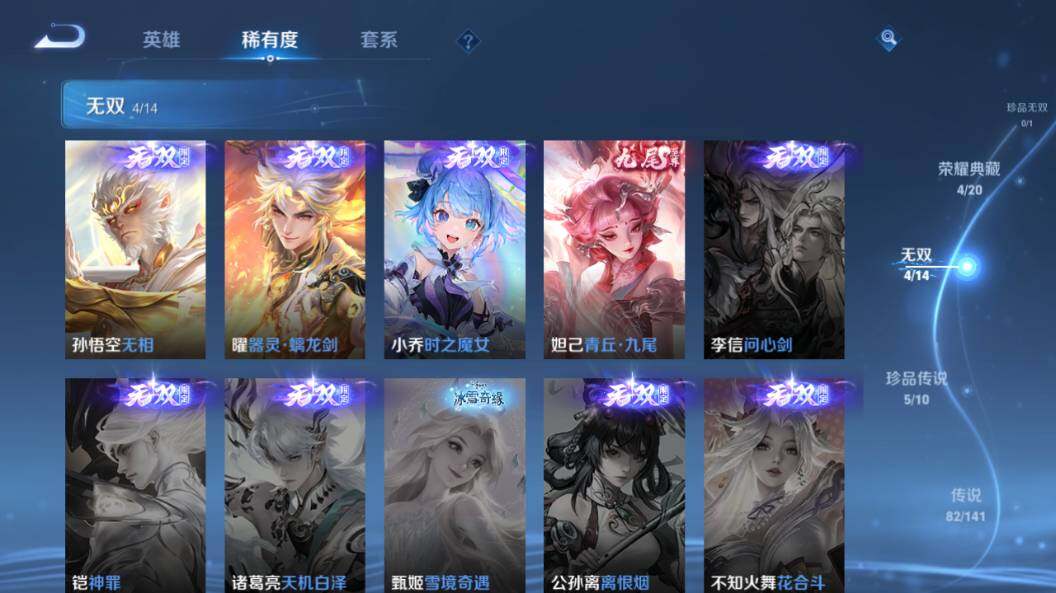 【无双皮肤】:孙悟空无相,曜器灵螭龙剑,小乔时之魔女,妲己青丘九尾