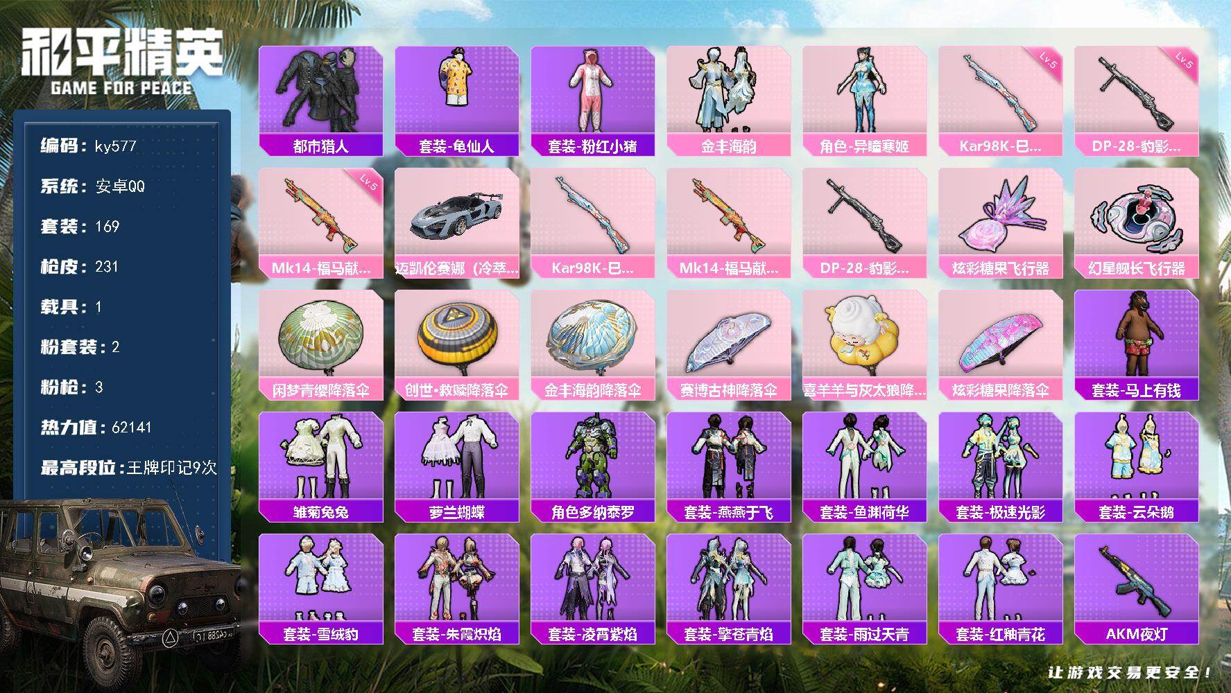 [17245434]安卓 手Q-2粉装-3特效枪-1载具-2粉色飞行器-62141热力值-9王牌印记-169套装-231枪皮