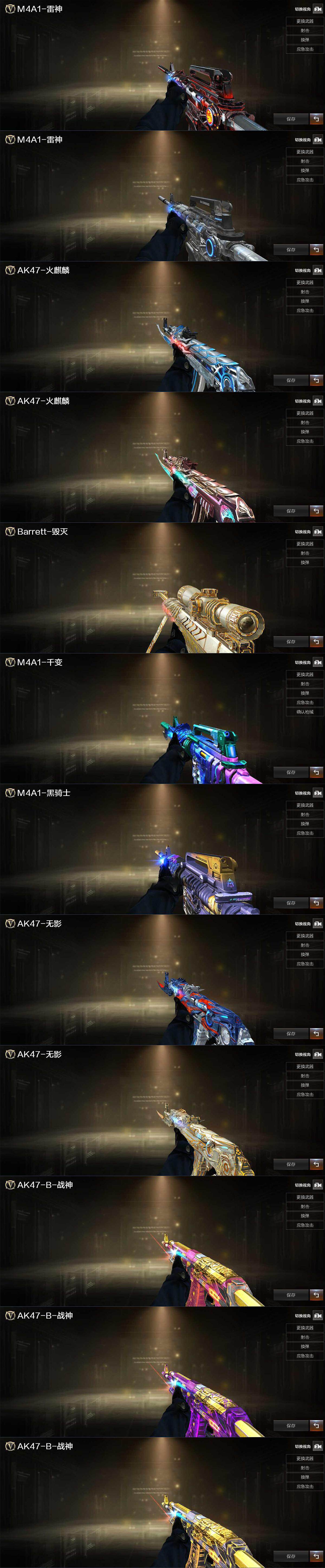 【音效卡】:AK47-火麒麟音效卡,M4A1-黑骑士音效卡,Barrett-毁灭音效卡