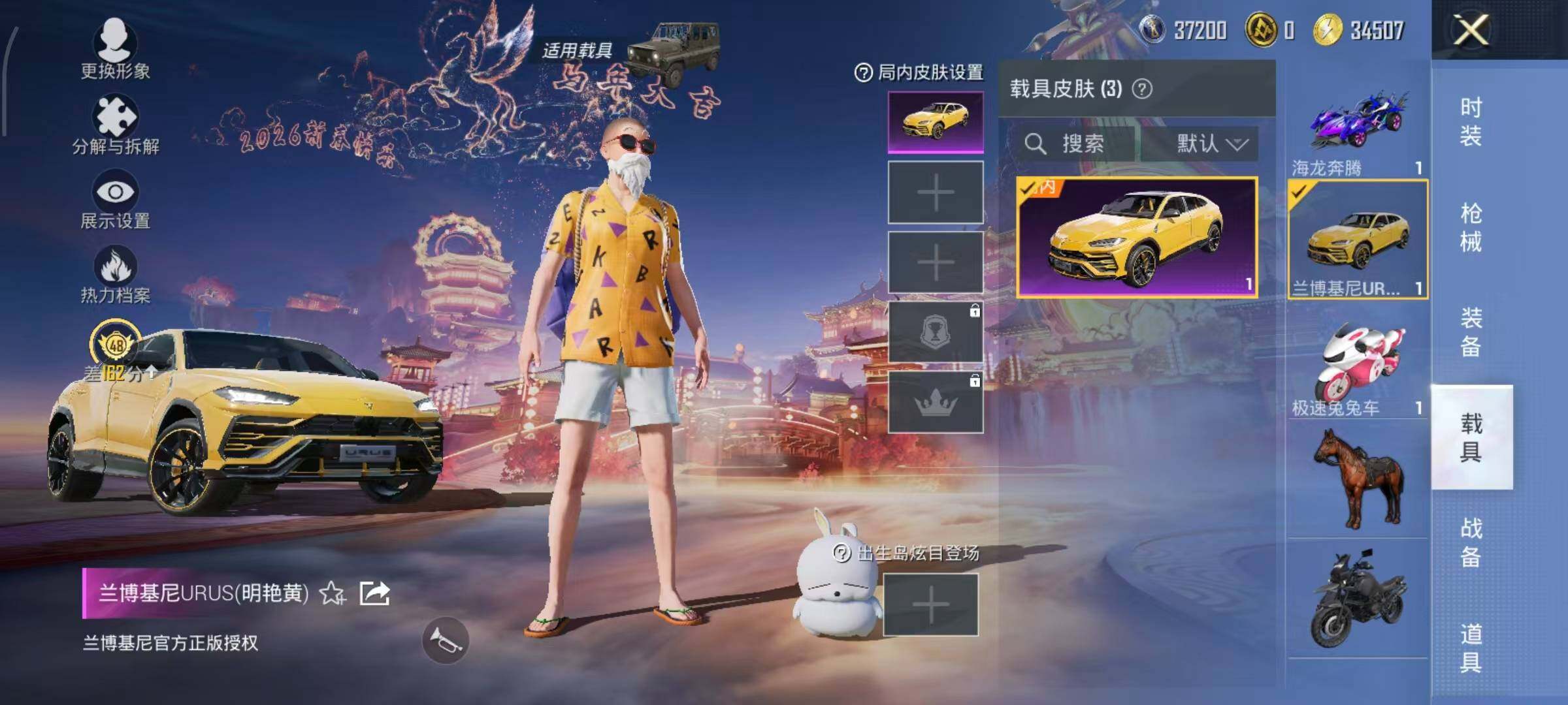 【粉色载具】:兰博基尼URUS(明艳黄),海龙奔腾,极速兔兔车