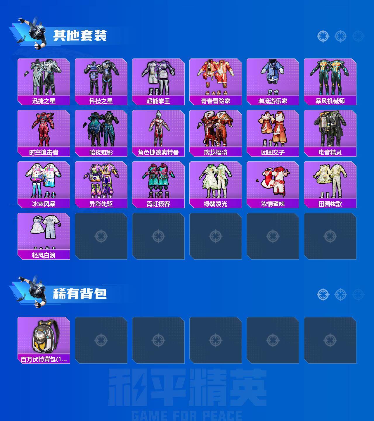 - [12693849]3级欧若拉/螳螂/老101/都市/安卓 微信-1神装-16粉装-12特效枪-6载具-10粉色飞行器-124932热力值-18王牌印记-283套装-336枪皮 【红色神装等级】:镜域双华-欧若拉(三级) 【红色角色神装】:镜域双华-欧若拉 【热门品类】:粉装-梦幻火箭,套装-浪漫天命,套装-火箭少女101,套装-都市猎人,套装-深海小丑鱼,套装-金羽特工,套装-忍者信条,角色-2B战斗服款,套装-龟仙人,套装-浪漫波比 【粉色载具】:阿斯顿马丁DBS(红),阿斯顿马丁DBX(蓝),宾利欧陆GT敞篷(火焰橘),宾利BATUR(极速紫),飞驰奶龙龙,僚机-冰龙团团,黑曜夜骑 【粉色套装】:粉装-梦幻火箭,粉装-古堡领主,粉装-王牌四分卫,粉装-相思残雪,粉装-暗夜玫瑰,角色-洛天依,角色-初号机款机体服,粉装-天之羽翼,粉装-暖熊萌萌,粉装-寒光使者,粉装-仲夏莫吉托,角色-茉莉星,角色-宙之时溯,角色-烟云彩露,角色-光极星,角色-荧海星豚 【粉色枪皮等级】:AKM-炫紫旋律(七级),SCAR-L-青春物语(三级),SCAR-L-魔童闹海 哪吒(三级),M416-暖熊萌萌(六级),M416-灵猫魔法师(三级),Kar98K-巳巳如意(四级),M24-镜域双华(三级),DP-28-豹影疾电(五级),MG3-洛神天依(五级),PKM-江南烟雨(五级),破片手榴弹-美味星星糖(七级) 【粉色枪皮】:AKM-炫紫旋律,SCAR-L-青春物语,SCAR-L-魔童闹海 哪吒,M416-暖熊萌萌,M416-灵猫魔法师,Kar98K-巳巳如意,M24-镜域双华,Mk14-闲梦青缨,DP-28-豹影疾电,MG3-洛神天依,PKM-江南烟雨,破片手榴弹-美味星星糖 【粉色飞行器】:春暖花开飞行器,荧光虫舞飞行器,阿狸红飞行器,王牌四分卫飞行器,天之羽翼飞行器,萌物绒绒飞行器,超新星飞行器,镜域双华-灵镜之阶,灵猫魔法师飞行器,飞天猪飞行器 【粉色降落伞】:未来战士降落伞,至尊龙雀降落伞,春暖花开降落伞,阿狸红降落伞,王牌四分卫降落伞,相思残雪降落伞,怪笑疯兔降落伞,洛神天依降落伞,天之羽翼降落伞,恐龙拽拽降落伞,炙焰牛王降落伞,暖熊萌萌降落伞,第五大道降落伞,未来歌姬降落伞,闲梦青缨降落伞,沙丘之主降落伞,镜域双华降落伞,江南烟雨降落伞,创世·救赎降落伞,忍者神龟降落伞,宇宙意志降落伞,