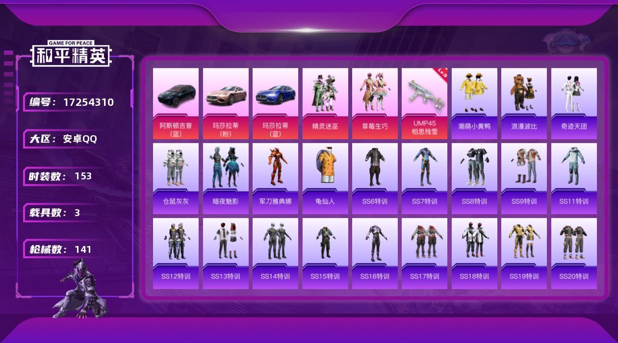 [17254310]可二次【特价出售/店主推荐】安卓 手Q-2粉装-2特效枪-3载具-2粉色飞行器-49284热力值-3王牌印记-153套装-141枪皮