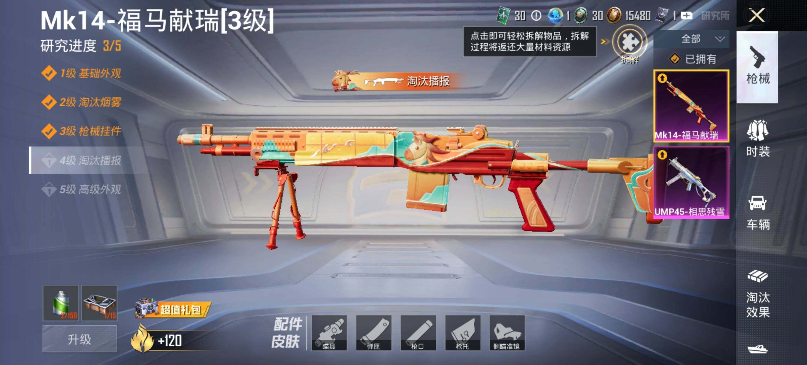 【粉色枪皮等级】:UMP45-相思残雪(五级),Mk14-福马献瑞(三级)