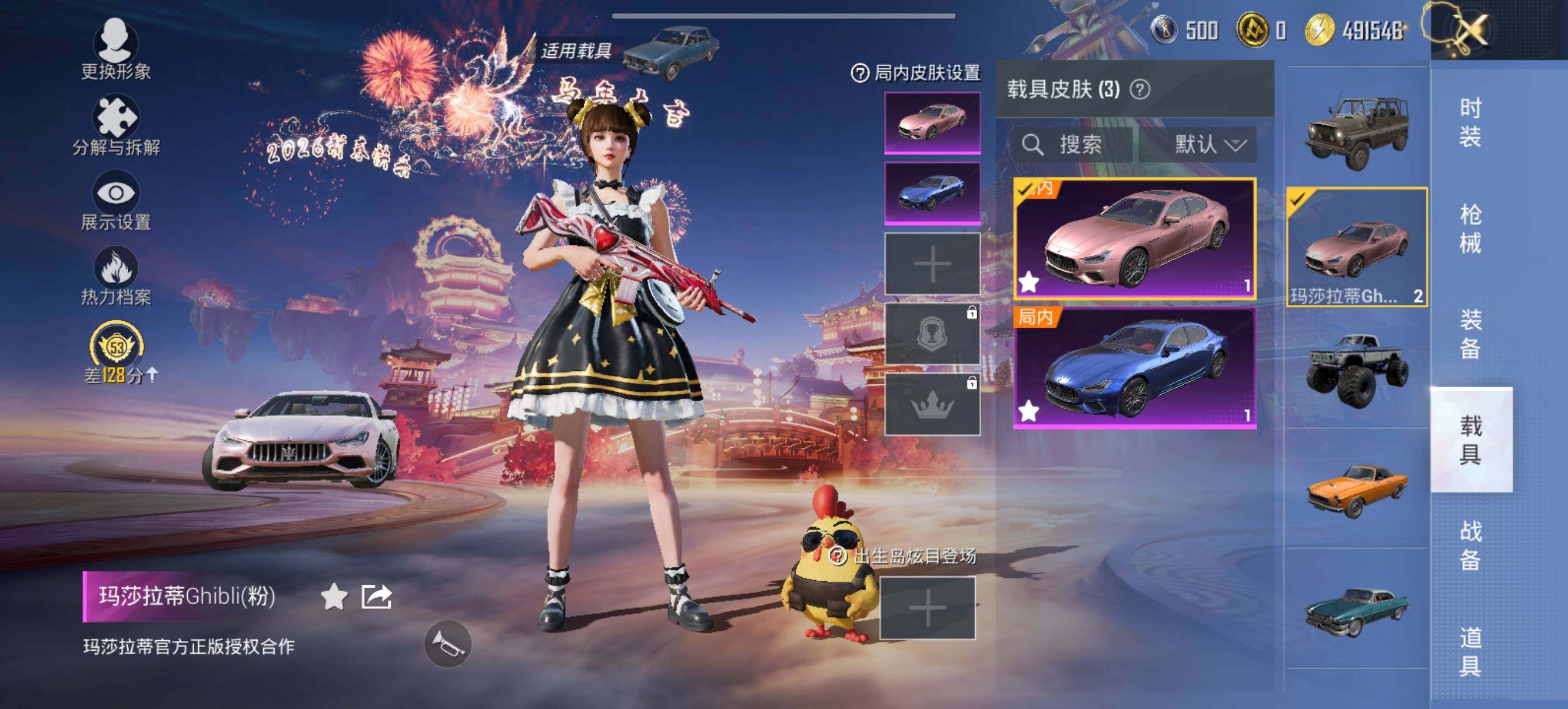 【粉色载具】:阿斯顿马丁DBX(蓝),玛莎拉蒂Ghibli(粉),玛莎拉蒂Ghibli(蓝)