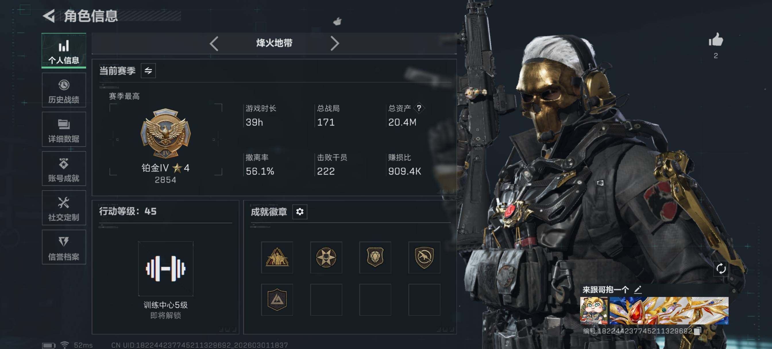 [17254430]【特价出售/店主推荐】20m总资产-15k哈伏币-45烽火等级-铂金-7战场等级-列兵