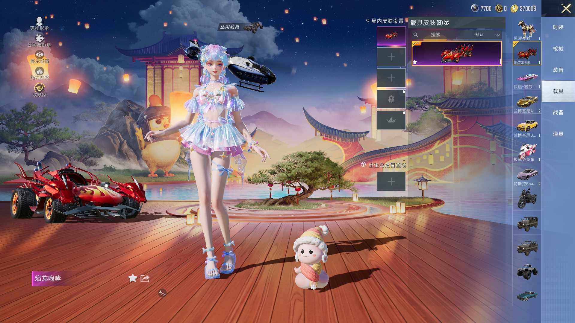 【粉色载具】:特斯拉Roadster(沁心粉),兰博基尼Aventador SVJ(翡翠绿),兰博基尼Aventador SVJ(炫光金),兰博基尼Estoque(银翼灰),兰博基尼URUS(明艳黄),焰龙咆哮,极速兔兔车,空客H135-蔚蓝之翼,快艇-塞莎KL27(霓虹粉),黑曜夜骑