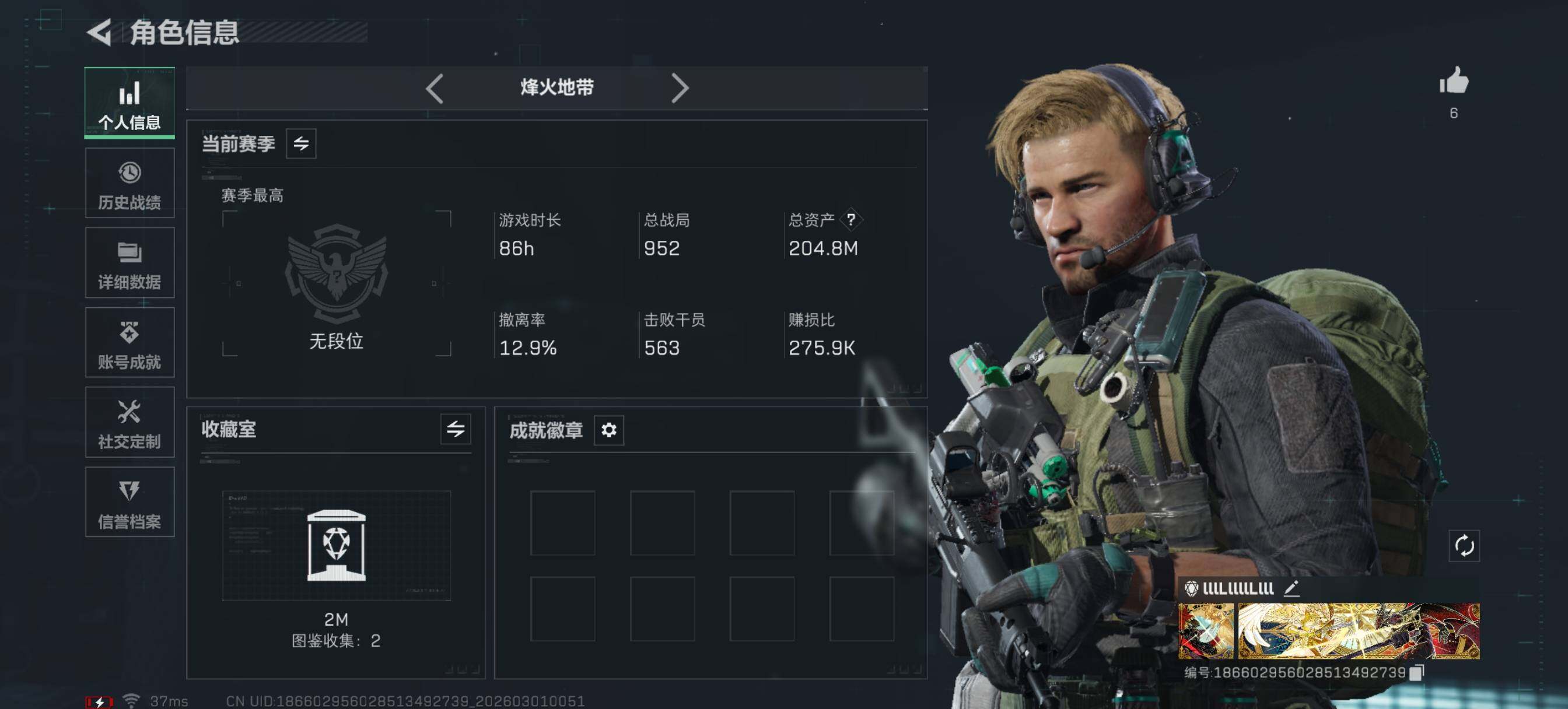 [17254674]【特价出售/店主推荐】204m总资产-159010k哈伏币-60烽火等级-青铜-16战场等级-列兵