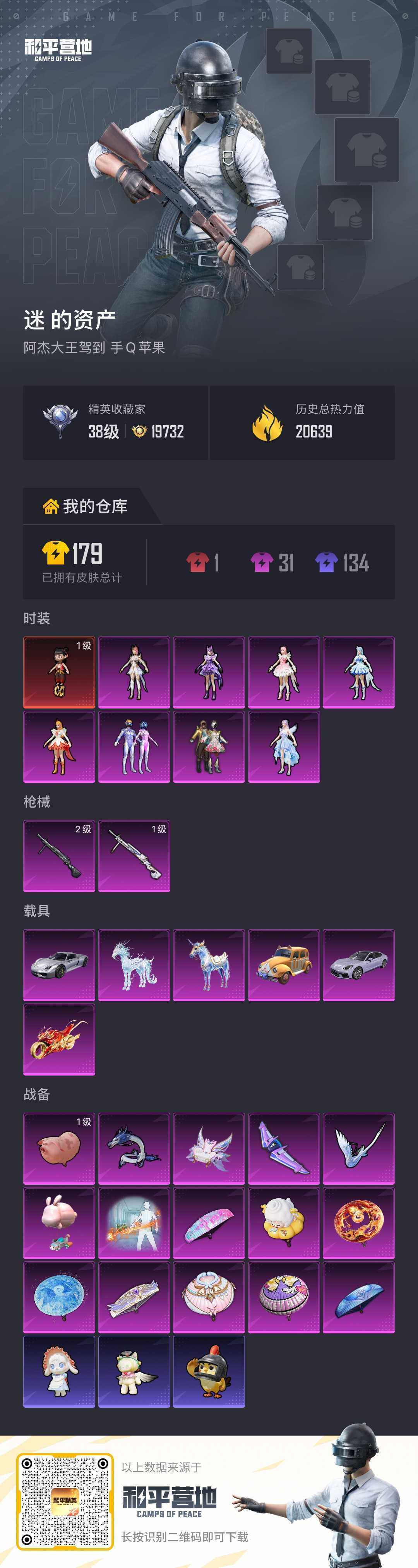 [17254784]可二次【特价出售/店主推荐】苹果 手Q-1神装-8粉装-2特效枪-6载具-5粉色飞行器-20639热力值-1王牌印记-24套装-39枪皮