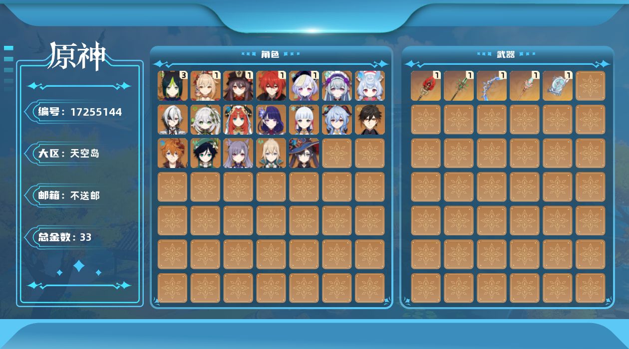 [17255144]58级/33黄/女主/21个五星角色/5个五星武器