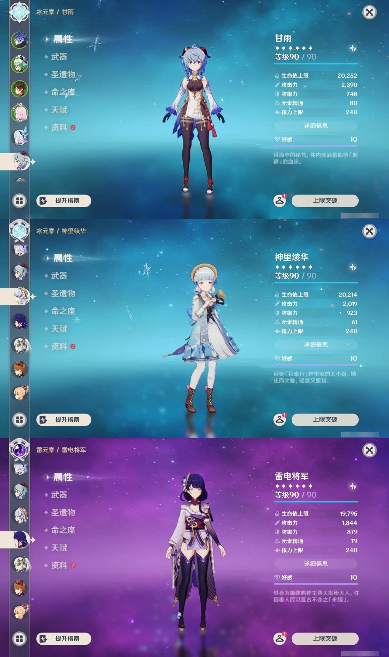 钟离,甘雨,神里凌华,雷电将军,达达利亚,宵宫,胡桃,温迪,莫娜,迪卢克,琴,七七,刻晴