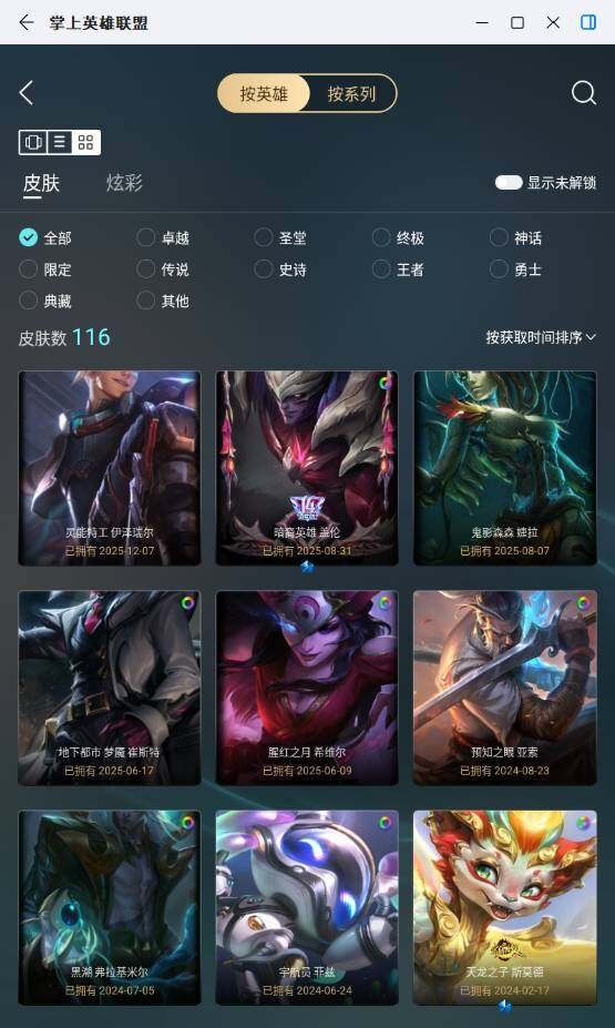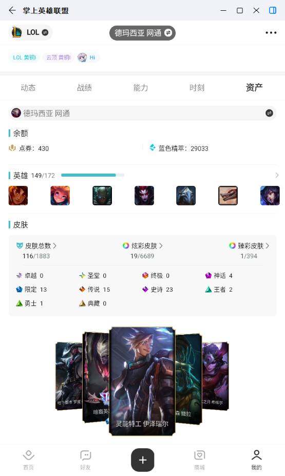 [17255323]青铜段位-149英雄-116皮肤-19炫彩-0终极-4神话-13限定-15传说-23史诗