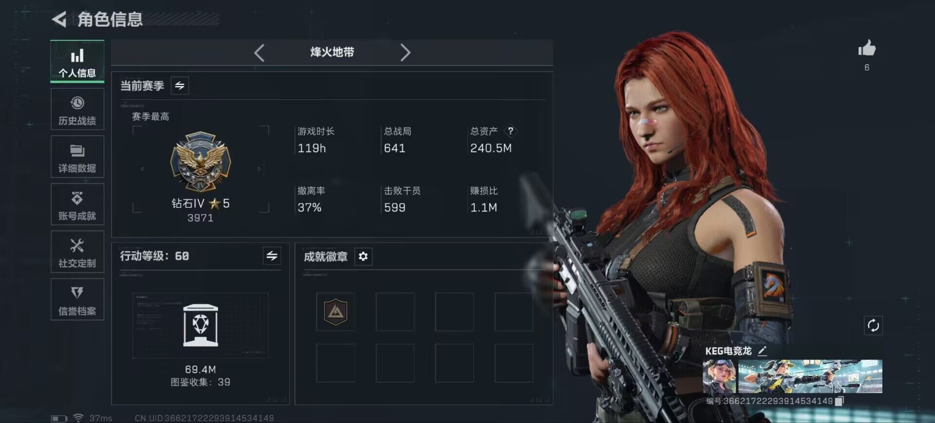 [17257642]【特价出售/店主推荐】240m总资产-50964k哈伏币-60烽火等级-钻石-1战场等级-无军衔