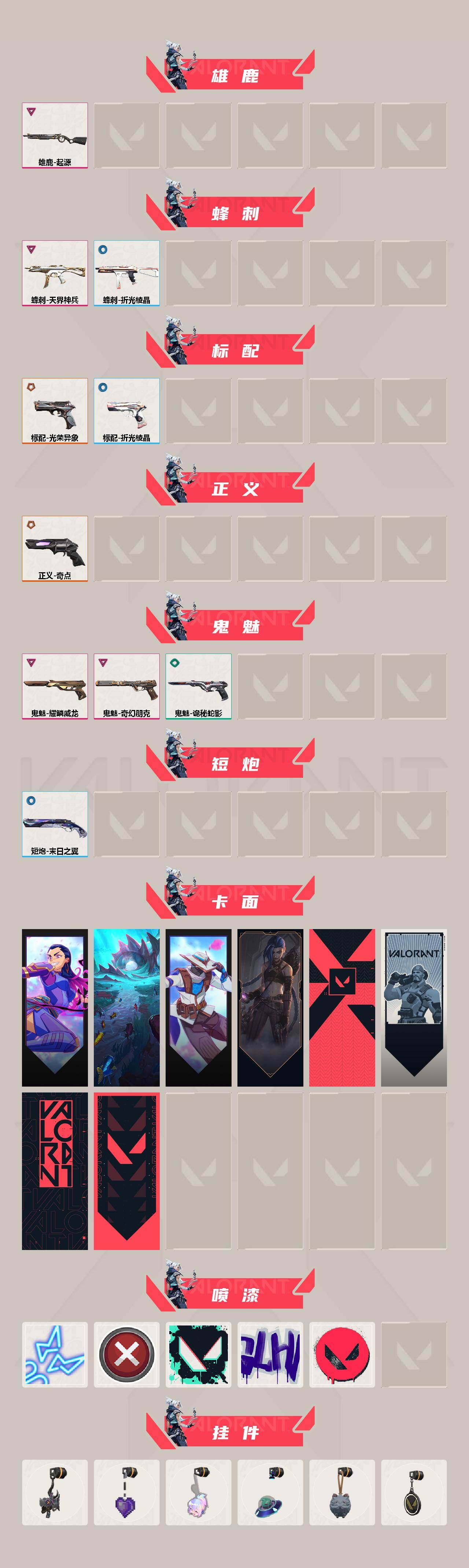 【卡面】:无畏契约GO!第一卷:芮娜 卡面,珍珠棘贝 卡面,无畏契约GO!第一卷:零 卡面,《双城之战》金克丝 卡面,代号红色 卡面,新兵报到 卡面,V契约 卡面,无畏契约 卡面