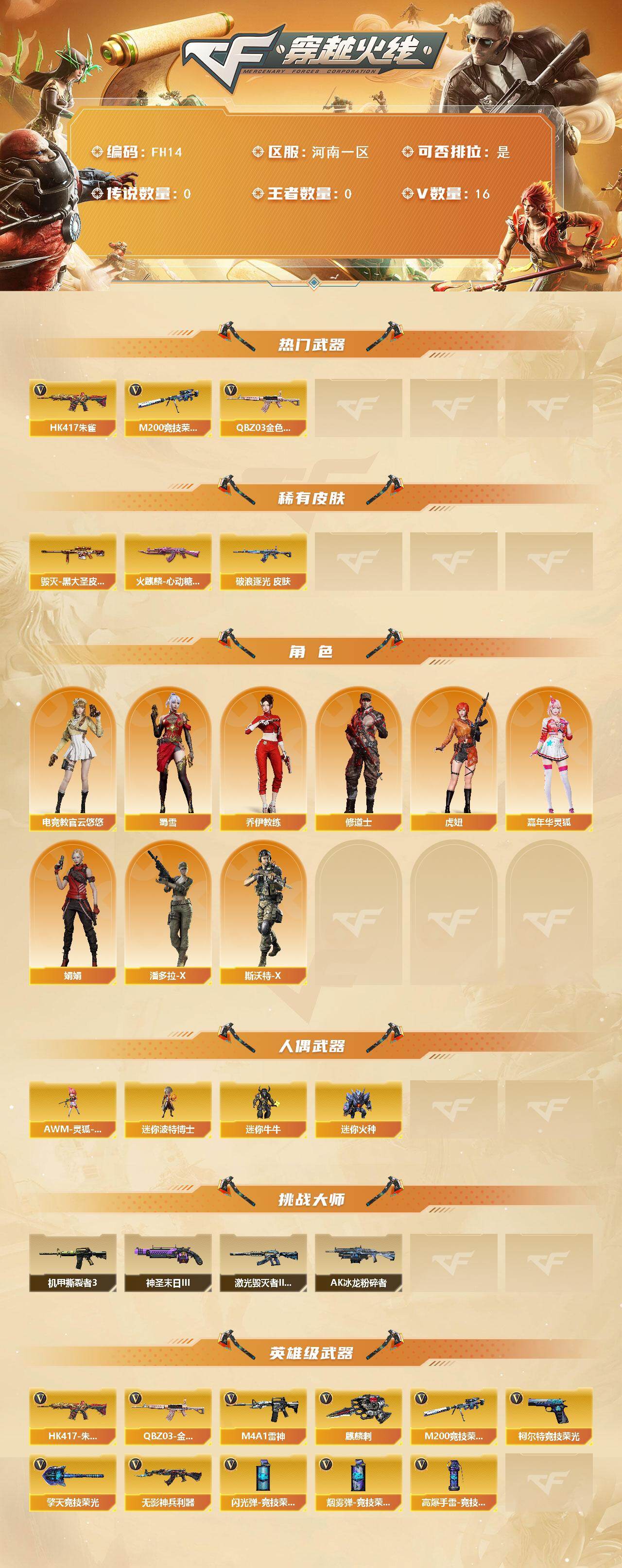 [17260912]河南一区-18V-0王者武器数-0炫金武器数
