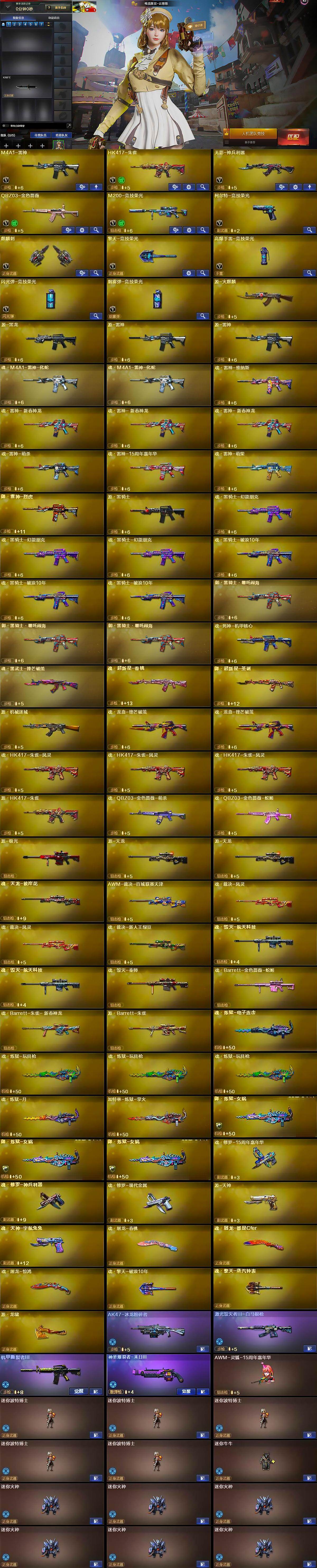 【英雄级武器】:M4A1-雷神,HK417-朱雀,无影-神兵利器,QBZ03-金色蔷薇,M200-竞技荣光,柯尔特-竞技荣光,麒麟刺,擎天-竞技荣光,高爆手雷-竞技荣光,闪光弹-竞技荣光,烟雾弹-竞技荣光