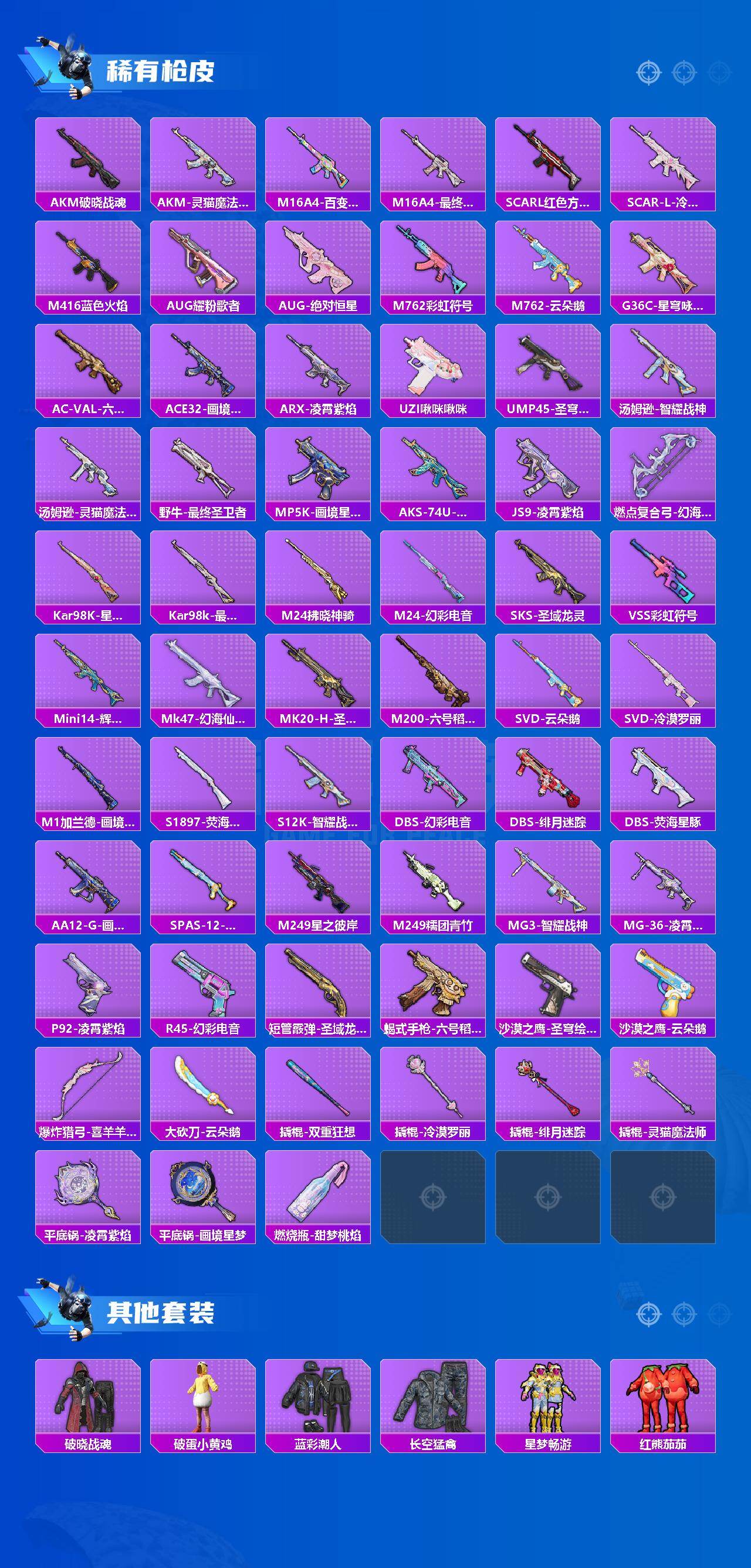 【稀有枪皮】:AKM-破晓战魂,AKM-灵猫魔法师,M16A4