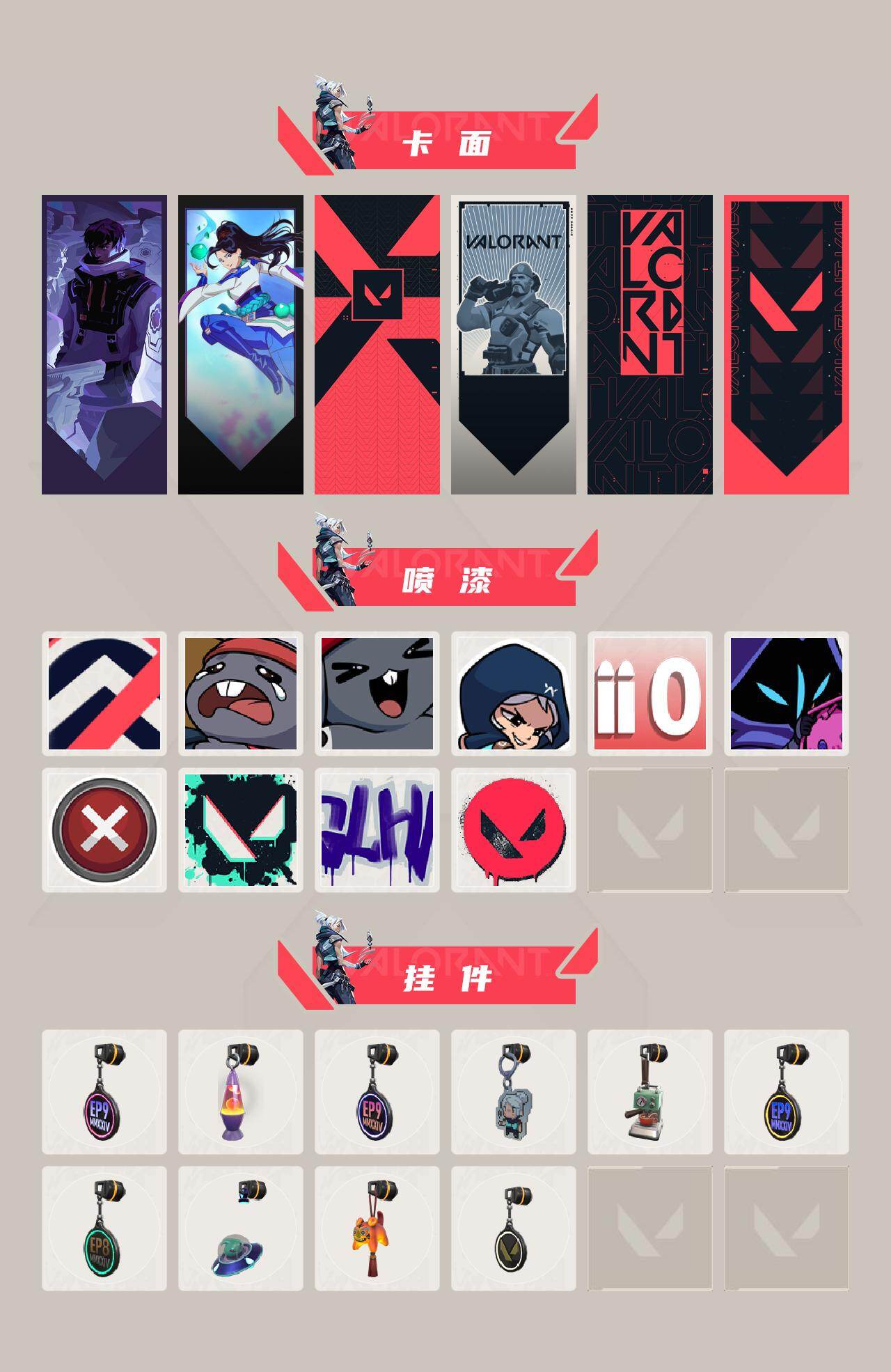 【喷漆】:控场勿近 喷漆,熊抱 喷漆,超级粉丝 喷漆,捷风差距 喷漆,拼一枪 喷漆,情绪控制 喷漆,买装还是存钱 喷漆,胜利属于无畏契约 喷漆,GLHF 喷漆,无畏契约 喷漆