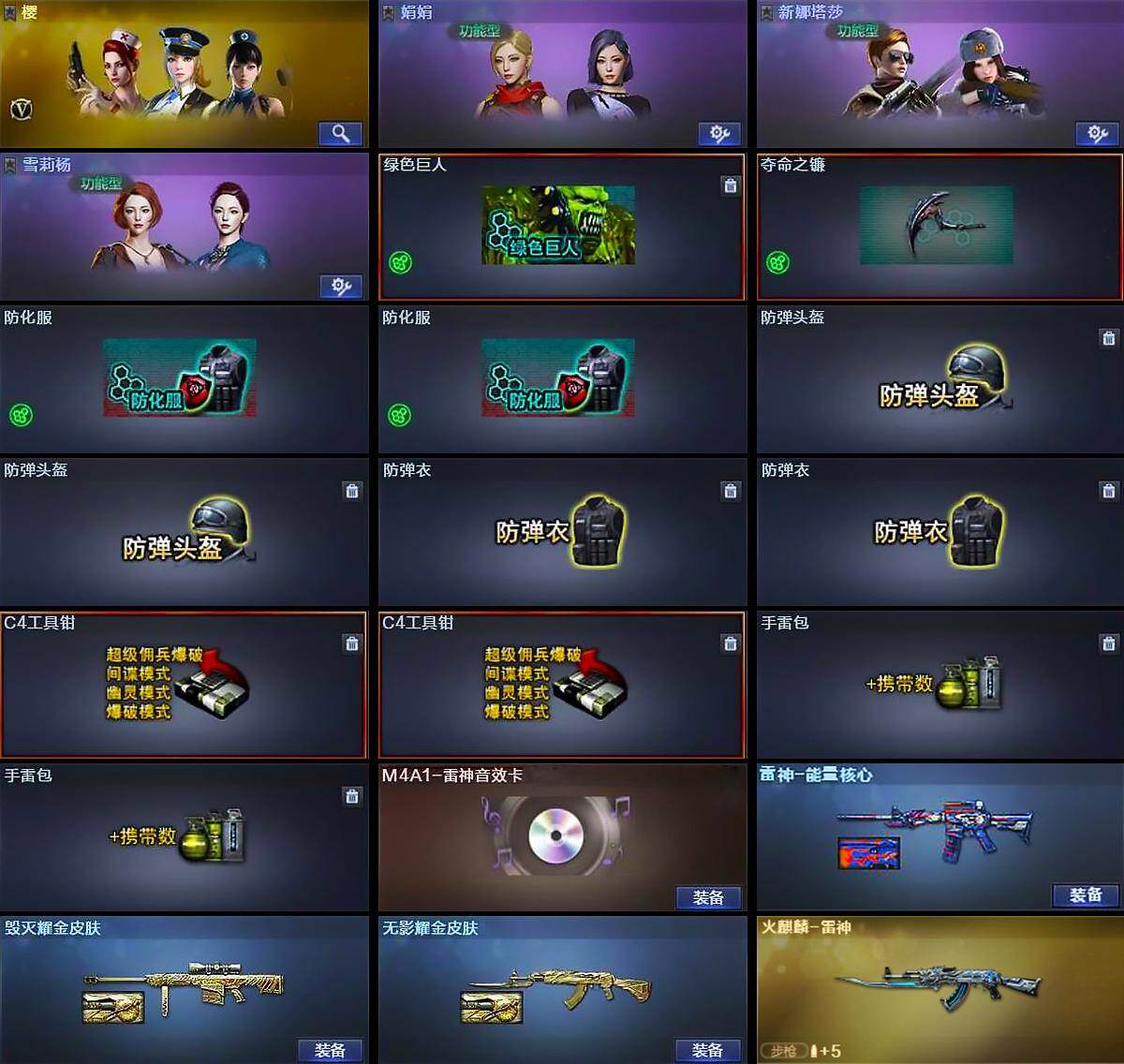 【道具】:绿色巨人,夺命之镰,防化服*2,防弹头盔*2,防弹衣*2,C4工具钳*2,手雷包*2