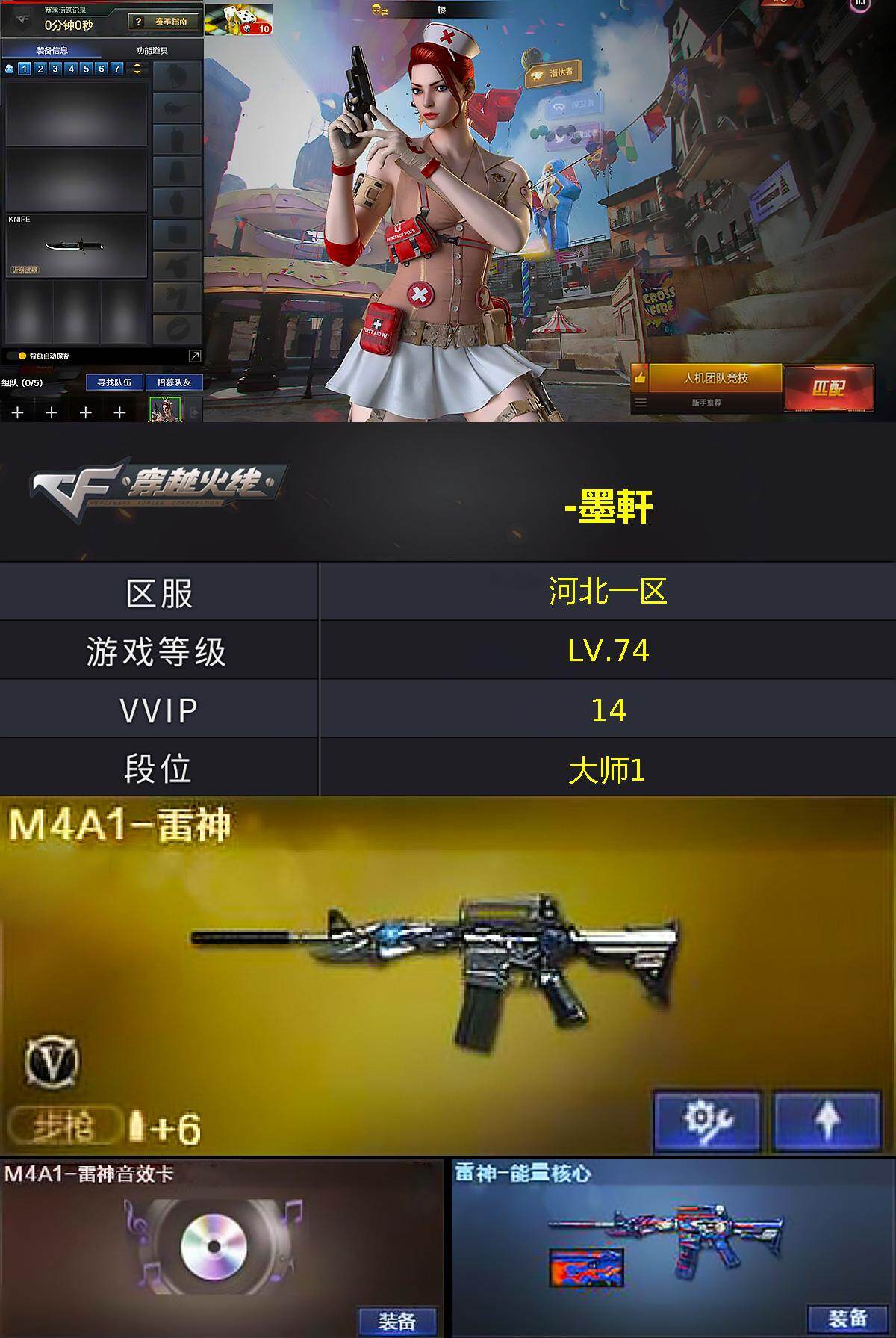 [17263893]河北一区-15V-0王者武器数-0炫金武器数 【热门武器】:死亡之眼,沙鹰-修罗 【音效卡】:M4A1-雷神音效卡 【皮肤】:雷神-能量核心,火麒麟-雷神,毁灭耀金皮肤,无影耀金皮肤 【角色】:樱,狐影,娟娟,新娜塔莎,雪莉杨 【暴走生化】:死亡之眼 【挑战大师】:激光毁灭者III 【英雄级武器】:AK47-火麒麟,M4A1-黑龙,M4A1-雷神,AK47-无影,M4A1-死神,Barrett-毁灭*2,沙鹰-修罗,沙鹰-天神,屠龙,龙啸,擎天,麒麟刺 【道具】:绿色巨人,夺命之镰,防化服*2,防弹头盔*2,防弹衣*2,C4工具钳*2,手雷包*2 【特殊枪械】: