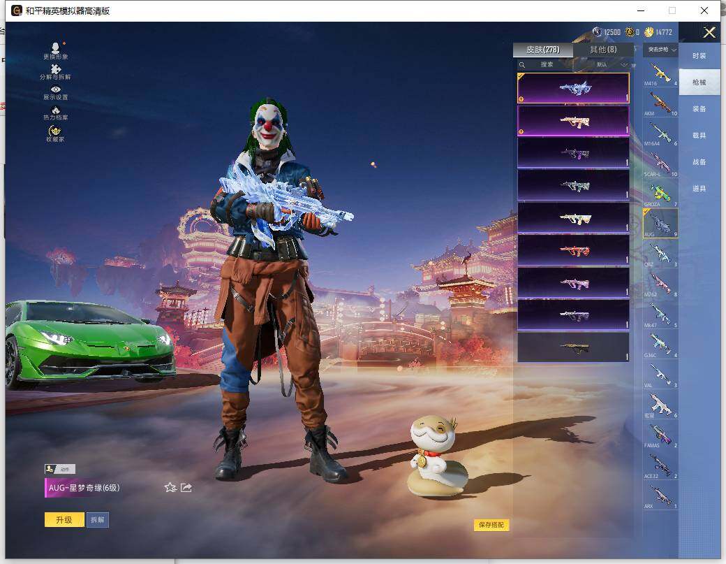 AKM-甜心宝贝,SCAR-L-梦幻火箭,SCAR-L-纯梦嫁纱,M416-五爪金龙,M416-暖熊萌萌,GROZA-香水柠檬,AUG-星梦奇缘,AUG-暖羊咩咩,M762-甜蜜誓约,UZI-绮梦青鸾,Vector-环太平洋,Kar98K-巳巳如意,M24-星之信仰,Mini14-荧光虫舞,M249-彩虹甜喵,平底锅-仲夏莫吉托