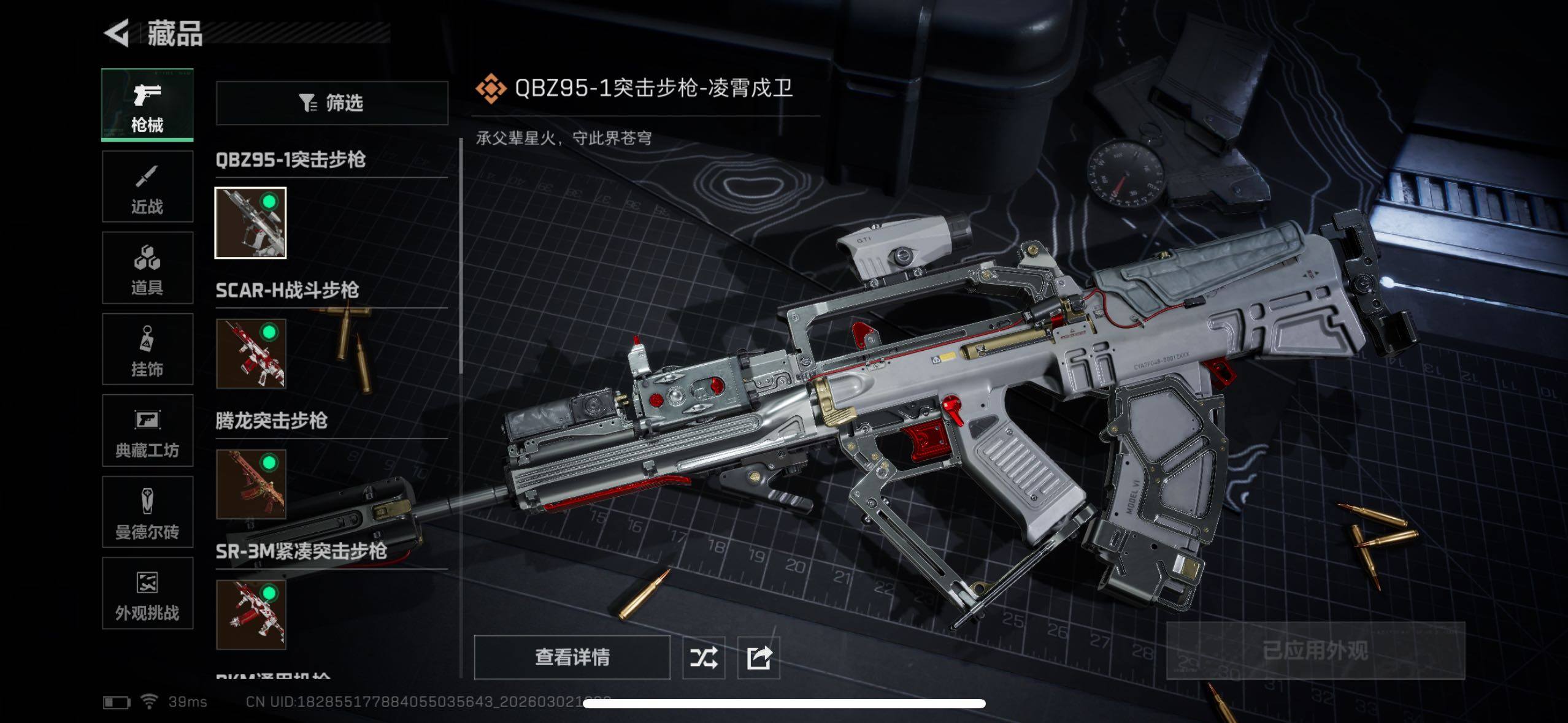【普通外观】:MP5冲锋枪-古铜,M4A1突击步枪-高雅黑,M4A1突击步枪-海色,QBZ95-1突击步枪-高雅黑,QBZ95-1突击步枪-2026,腾龙突击步枪-三角洲力量,K416突击步枪-高雅黑,M16A4突击步枪-高雅黑,AUG突击步枪-浅蓝涂装,SG552突击步枪-海浪,SCAR-H战斗步枪-数码迷彩,G3战斗步枪-高雅黑,PTR-32突击步枪-黄蜂,MP5冲锋枪-海色,Vector冲锋枪-几何迷彩,M1014霰弹枪-高雅黑,M1014霰弹枪-海浪,M1014霰弹枪-重击,M249轻机枪-黄蜂,QJB201轻机枪-典雅,SVD狙击步枪-高雅黑,沙漠之鹰-海浪,G17-2026