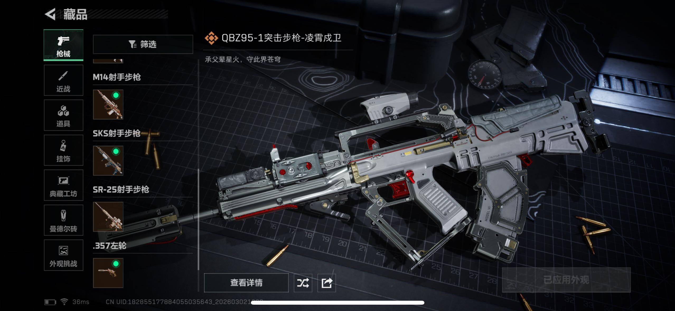 【稀有外观】:AKM突击步枪-肃杀,K416突击步枪-一帆风顺,SG552突击步枪-2026,SG552突击步枪-贴花艺术,MP5冲锋枪-哈夫克卫队,SMG-45冲锋枪-行动开启,M1014霰弹枪-幻影结构,M249轻机枪-冰天雪地,QJB201轻机枪-哈夫克卫队,SR-25射手步枪-开拓,SV-98狙击步枪-星链科技,SV-98狙击步枪-哈夫克航天,SV-98狙击步枪-精英联盟