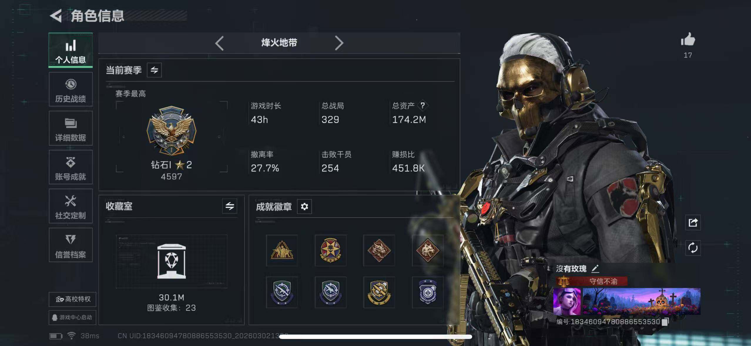 [17265547]【特价出售/店主推荐】174m总资产-60556k哈伏币-60烽火等级-钻石-41战场等级-上等兵