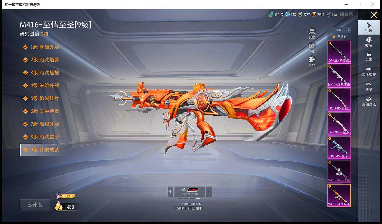 M416-至情至圣,M416-电玩时刻,UMP45-量子极限,Kar98K-巳巳如意,DP-28-千金淑猫