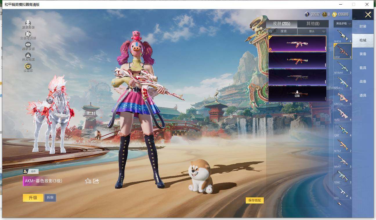 【粉色枪皮】:AKM-暮色玫影,蜜獾-辉耀战甲,UMP45-萌骑冒险,AKS-74U-森灵之息,Kar98K-巳巳如意,Mk14-福马献瑞,DP-28-千金淑猫,M338-回旋牧梦使,平底锅-林间仙鹿