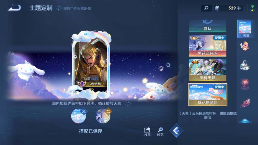 武则天女帝,小乔天鹅之梦,鲁班七号星空梦想,夏侯惇无限飓风号,孙悟空全息碎影,铠银白咏叹调,貂蝉幻阙歌,虞姬神鉴启示录,瑶拾光映像,伽罗最初的交响