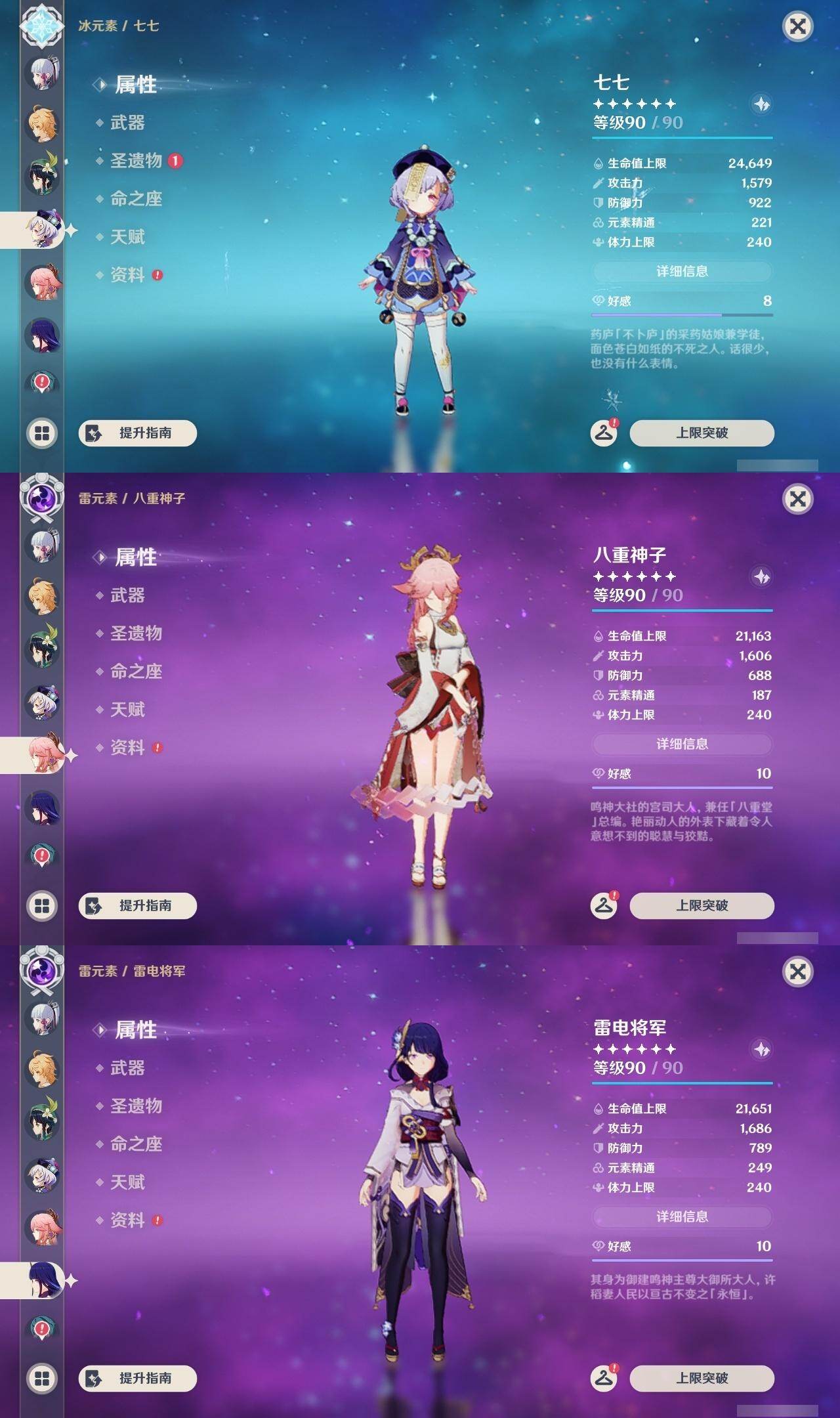 钟离,胡桃,神里凌华,温迪,七七,八重神子,雷电将军,刻晴,莫娜,迪卢克