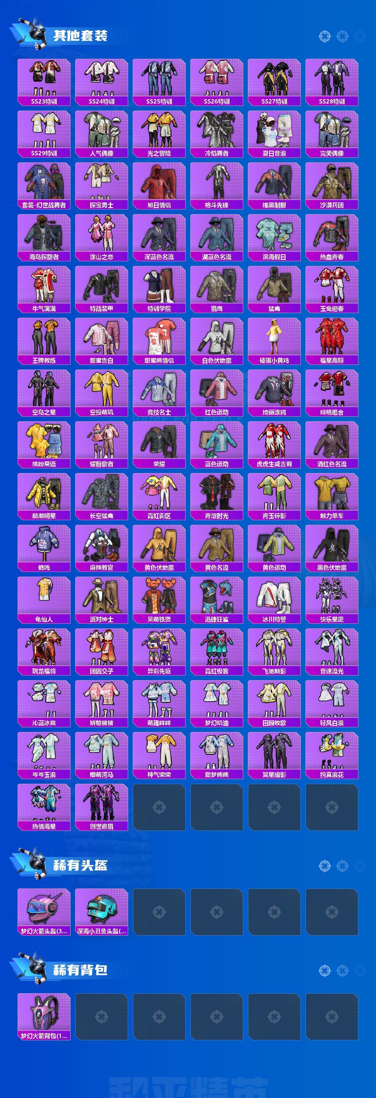 - [15111265]素材身法号老101苹果 微信-14粉装-7特效枪-2载具-1僚机-5粉色飞行器-78037热力值-16王牌印记-175套装-221枪皮 【热门品类】:粉装-怪诞乔克,粉装-繁龙极客,套装-寒蝎幽灵,套装-浪漫天命,套装-火箭少女101,套装-都市猎人,套装-派对舞王,套装-深海小丑鱼,套装-小丑鱼,套装-胖达团团,套装-胖达圆圆,套装-龟仙人,套装-暗影哥特,套装-红红火火,M416-星际漫游 【粉色套装】:粉装-怪诞乔克,粉装-甜心巧克力,粉装-宝贝奶油派,粉装-天使彩虹糖,粉装-花间之火,粉装-冰霜白皇,粉装-炙焰红王,角色-洛天依,角色-初号机款机体服,粉装-恐龙拽拽,角色-小可学妹,角色-圣堂之誓,粉装-繁龙极客,粉装-幻彩电音 【粉色枪皮等级】:AKM-甜心宝贝(七级),SCAR-L-童趣迷兔(七级),M416-心之恋语(七级),AUG-超新星(七级),Kar98K-巳巳如意(五级),Mk14-甜梦熊击(五级),DP-28-豹影疾电(五级) 【粉色载具】:玛莎拉蒂Ghibli(粉),合金龙骨(蓝),僚机-萌兔起飞 【粉色枪皮】:AKM-甜心宝贝,SCAR-L-童趣迷兔,M416-心之恋语,AUG-超新星,Kar98K-巳巳如意,Mk14-甜梦熊击,DP-28-豹影疾电 【粉色飞行器】:镜光幻境飞行翼,极意拳锋飞行器 【粉色降落伞】:深海曼妙降落伞,极限特训降落伞,甜心宝贝降落伞,春暖花开降落伞,星之信仰降落伞,星之彼岸降落伞,恐龙拽拽降落伞,闪光银龙降落伞,垂柳戏鸭降落伞,飒粉甜心降落伞,天星战神降落伞,花傲天降落伞,繁龙极客降落伞,精灵之光降落伞,千金淑猫降落伞,炫彩糖果降落伞 【稀有套装】:套装-龟仙人,套装-绒宝小鹅,套装-巳巳如意,套装-雪国风尚,套装-雏菊兔兔,套装-萝兰蝴蝶,套装-小熊娃娃,套装-糖糖葫芦,套装-青团波波,套装-棉花软糖,角色-都市丽猫,角色-许七安,套装-燕燕于飞,套装-鱼渊荷华,套装-炫彩糖果 【稀有枪皮】:AUG-冰晶雪宝,AKM-彩虹符号,AKM-影袭,AKM-恐龙拽拽,AKM-星之信仰,AKM-星之彼岸,AKM-破晓战魂,AKM-缤纷海域,AKM-龙的传人,M16A4-幻世战舞者,M16A4-星际漫游,M16A4-甜心亚梦,M16A4-千金淑猫,SCAR-L-夜灯,SCAR-L-玉兔迎春,M416-动感兔斯基,M41
