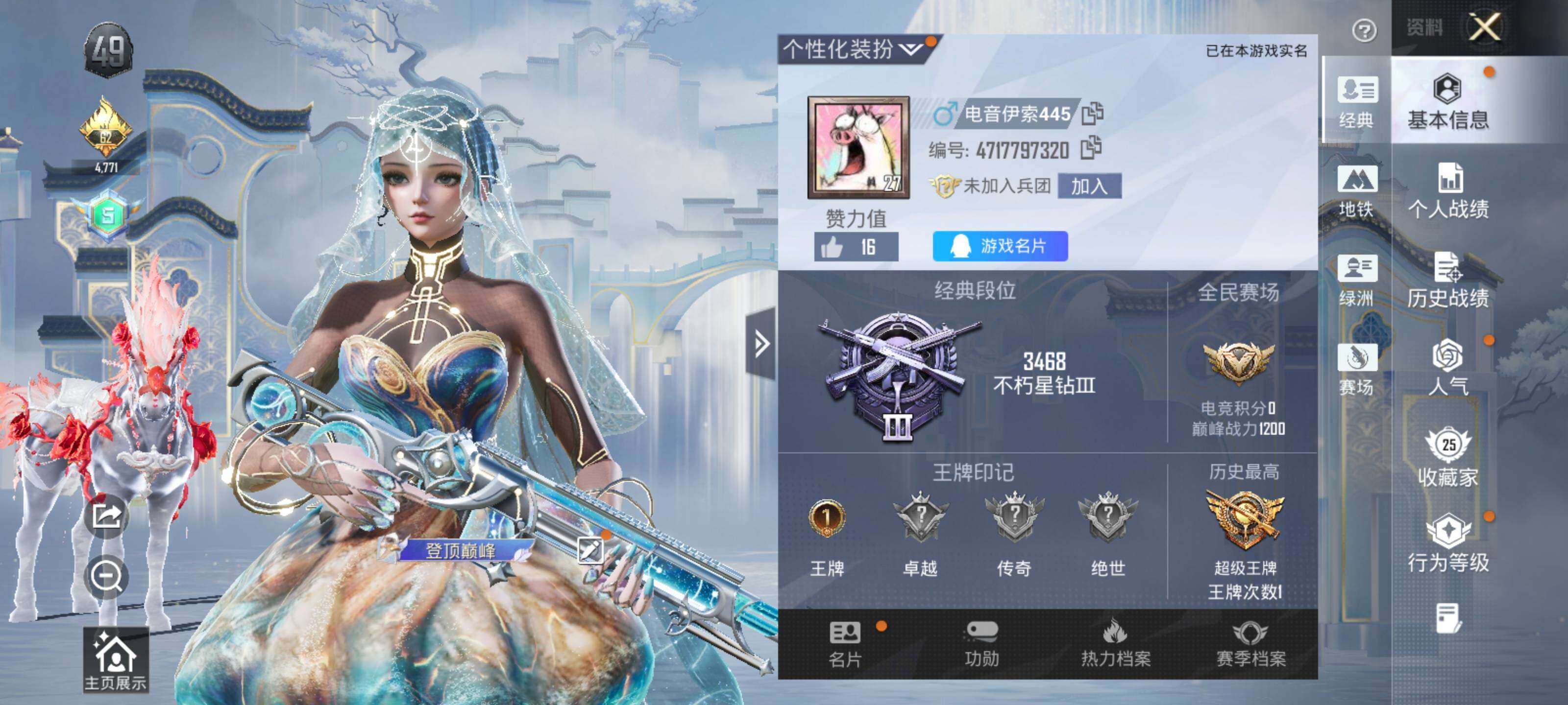 - [14353698]可二次【店主推荐捡漏号!可直接换绑】/素材身法号/老木乃伊/绝世印记12 安卓 微信-1神装-7粉装-6特效枪-6载具-8粉色飞行器-6.2w热力值-16王牌印记-124套装-176枪皮【红色神装等级】:沙丘之主-图卡盟(二级)【热门品类】:粉装-梦幻火箭,套装-冥河战士,套装-深海小丑鱼,套装-小丑鱼,套装-胖达团团,角色-忠猛周仓,套装-龟仙人,套装-浪漫波比,套装-粉红小猪,角色-8号机,角色-Mark.06【粉色载具】:玛莎拉蒂Ghibli(粉),宾利欧陆GT敞篷(火焰橘),宾利添越(浅瞪羚棕),迈凯伦570S(天际蓝),Formula E Gen2(巅峰兰),俏皮小熊猫【粉色套装】:粉装-梦幻火箭,角色-零号机款机体服,粉装-天星战神,角色-幻影,粉装-镜光幻境,角色-月影灵韵,粉装-幻彩电音【粉色枪皮等级】:P90-沙丘之主(三级),Kar98K-巳巳如意(五级),M24-镜域双华(三级),M417-第五大道(七级),DP-28-豹影疾电(五级),MG3-洛神天依(七级)【粉色飞行器】:酣梦熊熊飞行器,镜光幻境飞行翼,沙丘之主天马,镜域双华-灵镜之阶,龙翔九天飞行器,极意拳锋飞行器