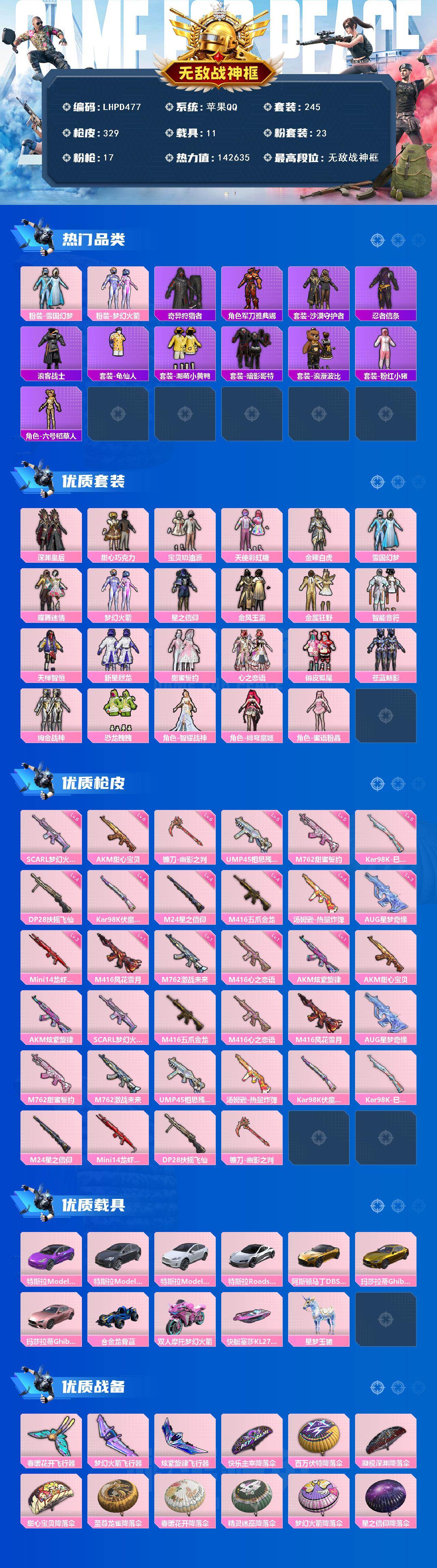 [17288335]八战神框【特价出售/店主推荐】苹果 手Q-无敌战神框-23粉装-17特效枪-11载具-4粉色飞行器-142635热力值-28王牌印记-245套装-329枪皮