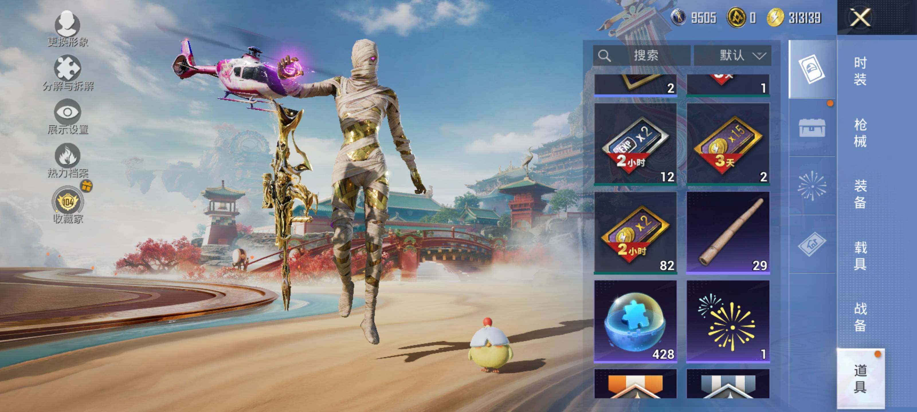 AKM-奇异狩猎者,M416-仓鼠灰灰,M416-魔法学院,GROZA-林间仙鹿,M762-瑞龙福将,Mk47-林间仙鹿,汤姆逊-林间仙鹿,M24-香水柠檬,Mini14-林间仙鹿
