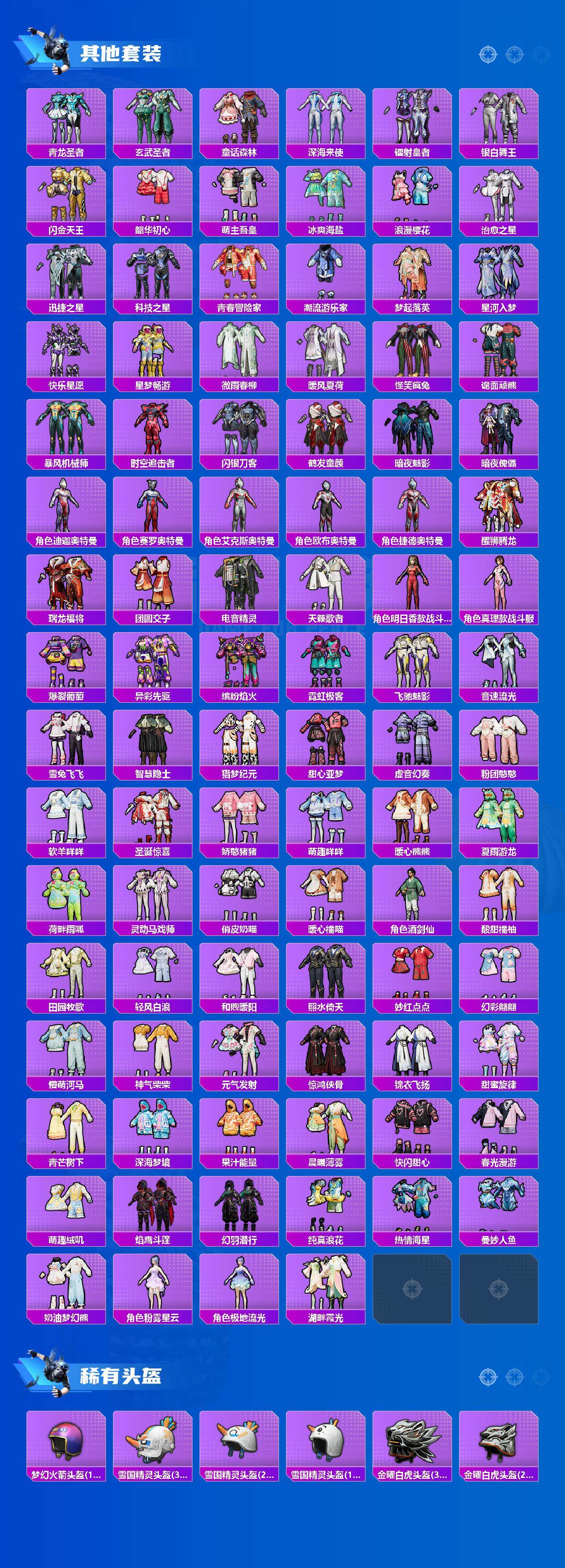 【粉色套装】:粉装-宝贝奶油派,粉装-天使彩虹糖,粉装-金曜白虎,粉装-雪国幻梦,粉装-梦幻火箭,粉装-金属狂野,粉装-缤纷油彩,粉装-狩月元帅,粉装-向日葵,粉装-极致幻想,粉装-星空之魅,粉装-迷蝶贵族,粉装-冰霜白皇,粉装-童趣迷兔,粉装-炙焰红王,粉装-香水柠檬,粉装-绮梦青鸾,粉装-星之彼岸,粉装-馨动时刻,粉装-暗夜玫瑰,角色-闪耀迪迦,粉装-彩虹鹿灵,粉装-山涧鹿灵,粉装-齐天大圣,角色-洛天依,粉装-沙场疾风,粉装-吟月归客,角色-初号机款机体服,粉装-灵感创作师,粉装-鸾凤武仙,粉装-彩虹甜喵,粉装-霞光圣骑,粉装-寒光使者,粉装-未来歌姬,角色-猩猩队长,粉装-炫光之旅,角色-光极星,粉装-未来领航者,角色-女娲灵识,角色-智耀战神,角色-异瞳寒姬