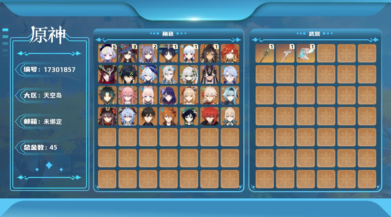 [17301857]58级/45黄/男主/29个五星角色/3个五星武器