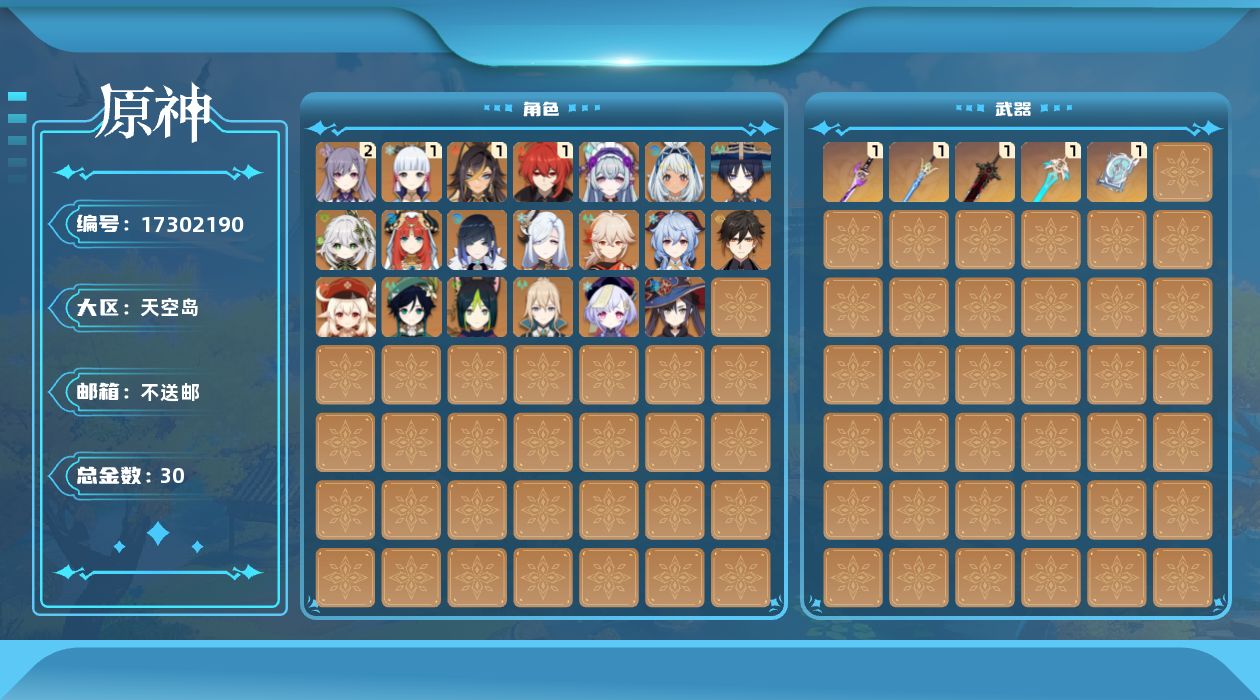 [17302190]58级/30黄/女主/20个五星角色/5个五星武器