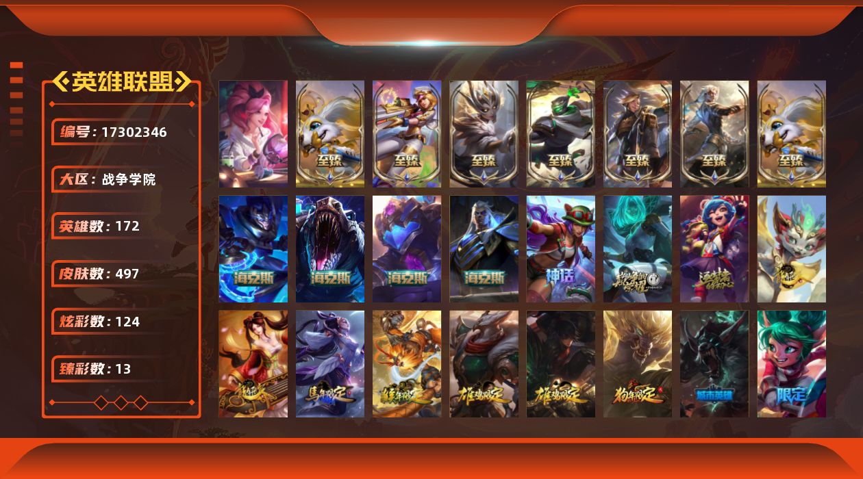 [17302346]【特价出售/店主推荐】白银段位-172英雄-497皮肤-124炫彩-3终极-16神话-49限定-44传说-116史诗