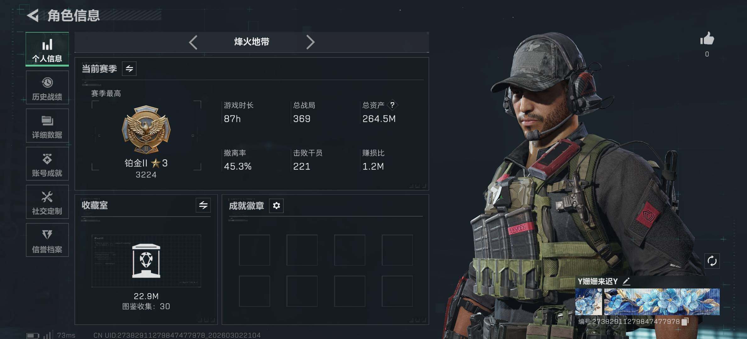 [17303325]【特价出售/店主推荐】264m总资产-180680k哈伏币-60烽火等级-铂金-1战场等级-无军衔