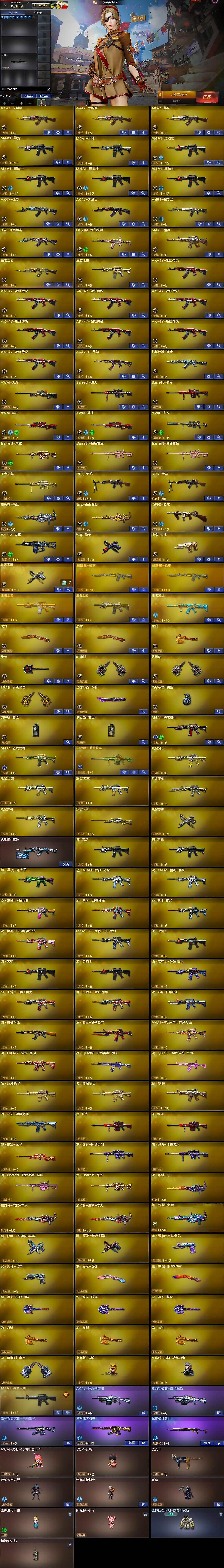 【热门武器】:QBZ03-金色蔷薇,M200-幻神,C.A.T,M4A1-黑骑士*4,汤姆逊-烈龙,RPK-盘龙*2,加特林-炼狱,降世魔童,沙鹰-修罗