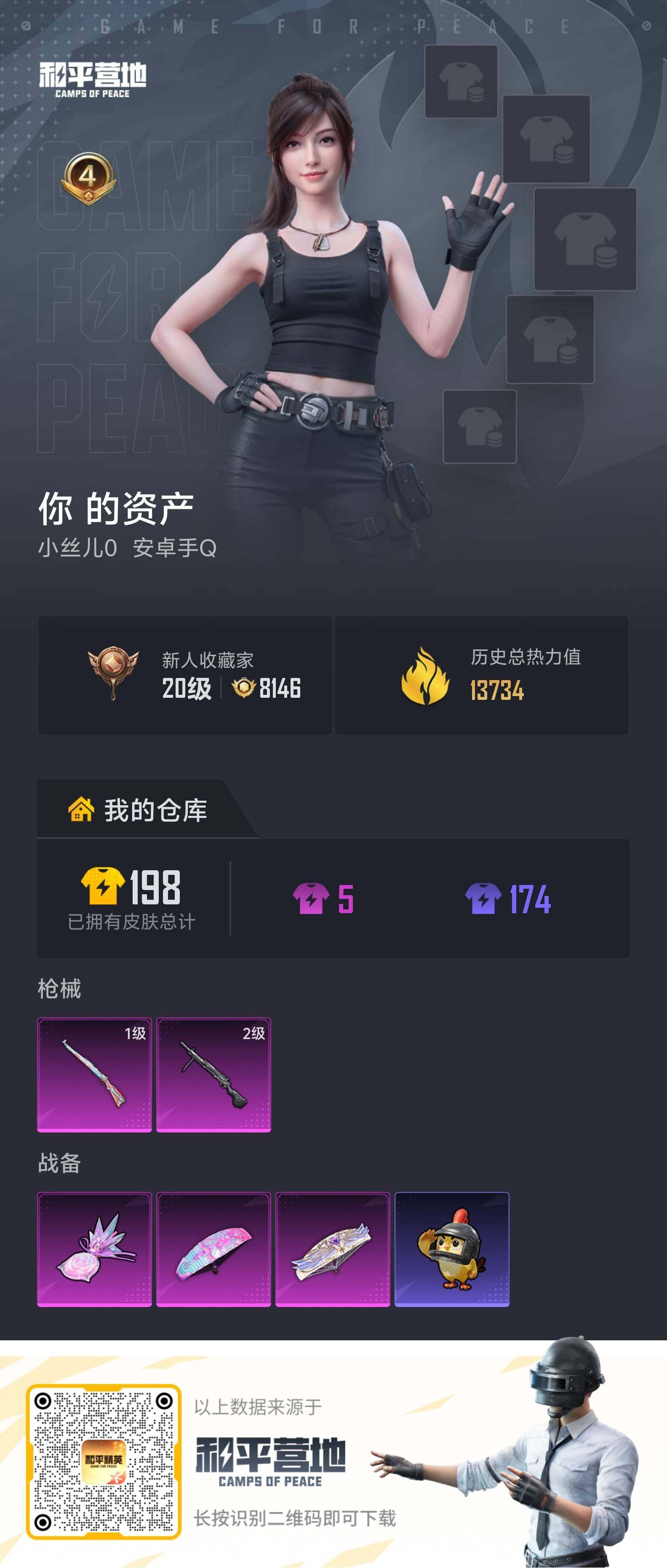 - PX_2092151- 安卓手Q-10王牌印记-3粉装-5特效枪-1载具-60882热力值-151套装-201枪皮-1卓越印记-0传奇印记 【3粉装】,白勺歌姬,千金淑猫,未来歌姬 【5特效枪】M416-心之恋语-7级 GROZA-镜光银凌-5级 AUG-暖羊咩咩-5级 M762-青锋波束-5级 Kar98K-巳巳如意-5级 【5稀有紫装】,暗影哥特,浪漫天命,雪山精英,龟仙人,临安公主, 【1